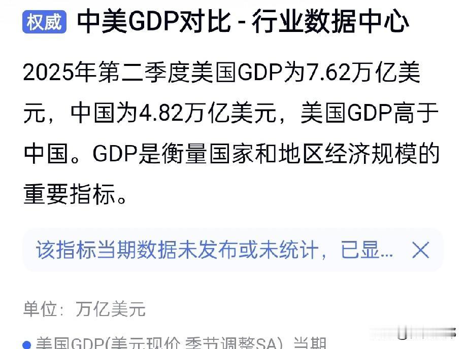2025中美GDP对比 数据揭晓 具体数据与对比 中国GDP:2025年,中国国内生产总值(GDP)达140.2万亿元人民币。若按照2025年全年平均汇率(约7.1429)折算,美元GDP约在19.6万亿至19.63万亿美元之间。若按2025年底或当前更高汇率(如6.92)折算,可达到20万亿至20.3万亿美元。 美国GDP:2025年,美国GDP预计会突破30万亿美元。依据国际货币基金组织(IMF)等的预测,具体数值约为30.6万亿美元。 基于平均汇率折算的数据,2025年中美GDP的绝对差距约为10.97万亿美元。