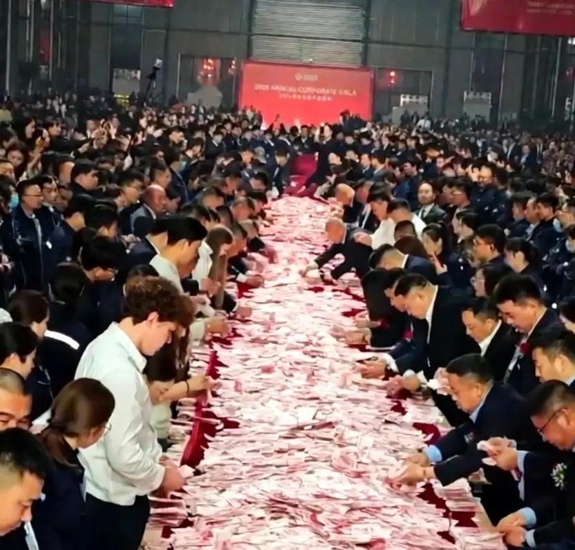 什么样的管理妙招?能让企业和员工双赢。 当“降本增效”“优化结构”成为许多企业年会的关键词时,河南矿山集团的年会现场却画风突变——70米长桌上,6000万现金堆成小山,员工围站两旁,在规定时间内“数多少拿多少”。有人手指翻飞数出十几万,有人紧张到手抖,全场7000余人的欢呼声几乎掀翻屋顶。 这还不是全部。2025年公司盈利2.7亿,老板崔培军拿出1.8亿分给员工,三分之二的利润全发了。消息一出,全网炸锅:这老板是不是疯了?他用什么“高明”的管理方法,能把企业做到年产值112亿、业务遍及130多个国家,还能对员工大方到“离谱”? 真相令人深思:崔培军的“管理秘籍”,可能恰恰是最朴素、最反常识的那一套。 第一,他取消了“管理”,却赢得了人心。 几千名员工不打卡、不考勤,全公司只有12条管理规定。下雪路滑?带薪休假。麦收农忙?发放专项补贴,外加1000元收割机补助。夏天太热?调整上班时间。在无数企业追求精细化、流程化管理的今天,这种“去制度化”近乎叛逆。但崔培军信奉的只有四个字:人心换人心。当员工被当成“兄弟姐妹”而非“人力资源”,当利益分配足够透明公平,制度反而成了多余的枷锁。 第二,他把“分钱”做成了一种仪式感。 为什么不直接把钱打进卡里?崔培军的回答很戳心:“打到卡里冷冰冰的,数字一刷就过去了。发现金不一样,员工辛苦一年,手里攥着厚厚一沓拿回家,热热闹闹的,这才有过年的感觉。” 他深知,对于从底层打拼过来的人而言,现金握在手里的那份沉甸甸,是对一年付出的确认,是对劳动者尊严的致敬。有员工数钱数到手抽筋,脸上却笑开了花——这种“获得感”,是任何企业文化标语都无法替代的。 第三,他的“大方”建立在极其清醒的财务逻辑上。 别以为崔培军只会撒钱。他坚持“不贷款、不融资、不拖欠”,2.7亿利润分1.8亿,剩下的9000万留作企业储备金——“家里有粮,心里不慌”。他对公益也同样清醒:“先把自己的员工、父老乡亲的日子过好,再做公益才有意义。” 这种稳健,与那些盲目扩张、寅吃卯粮的企业形成鲜明对比。 所以,崔培军到底高明在哪里? 答案或许藏在他的一句朴素的话里:“矿山挣一块钱,八毛九毛给员工,剩下的一毛是我的良心。” 很多老板把年终奖当成本,能省则省,算的是会计账,抠出来的是利润。崔培军把年终奖当投资,能多给绝不少给,算的是人心账,攒下来的是士气。 生产线上的手快一秒,研发室的灯晚熄一小时,销售员多跑一个客户——这1.8亿,根本不是花出去,是种下去。种子叫什么?叫幸福感、归属感、尊严感。员工拿到钱,热泪盈眶;企业收到回响,年产值112亿,利润2.7亿。数字不会骗人:对员工好,公司真的会更好。 更耐人寻味的是,崔培军今年计划招63人,结果报名近2000人。你看,好公司的门槛,从来都是员工抬高的。 当“内卷”“躺平”成为流行自嘲,当“打工人”的辛酸频频刷屏,崔培军的走红绝非偶然。公众太需要这样一个具象化的样本——证明善待员工与企业盈利并不矛盾,证明“以人为本”不是宣传话术而是可行的经营之道。 他不是在发钱,他是在用最直接的方式告诉所有人:企业是员工的企业,财富是共创的财富,发展是共享的发展。 愿这样的老板再多几个,愿这样的双向奔赴,成为职场的常态。 年会上的6000万现金,数的是钱,暖的是心,树的是标杆。当更多老板算清这笔“人心账”,“共富共享”才能真正走进现实。