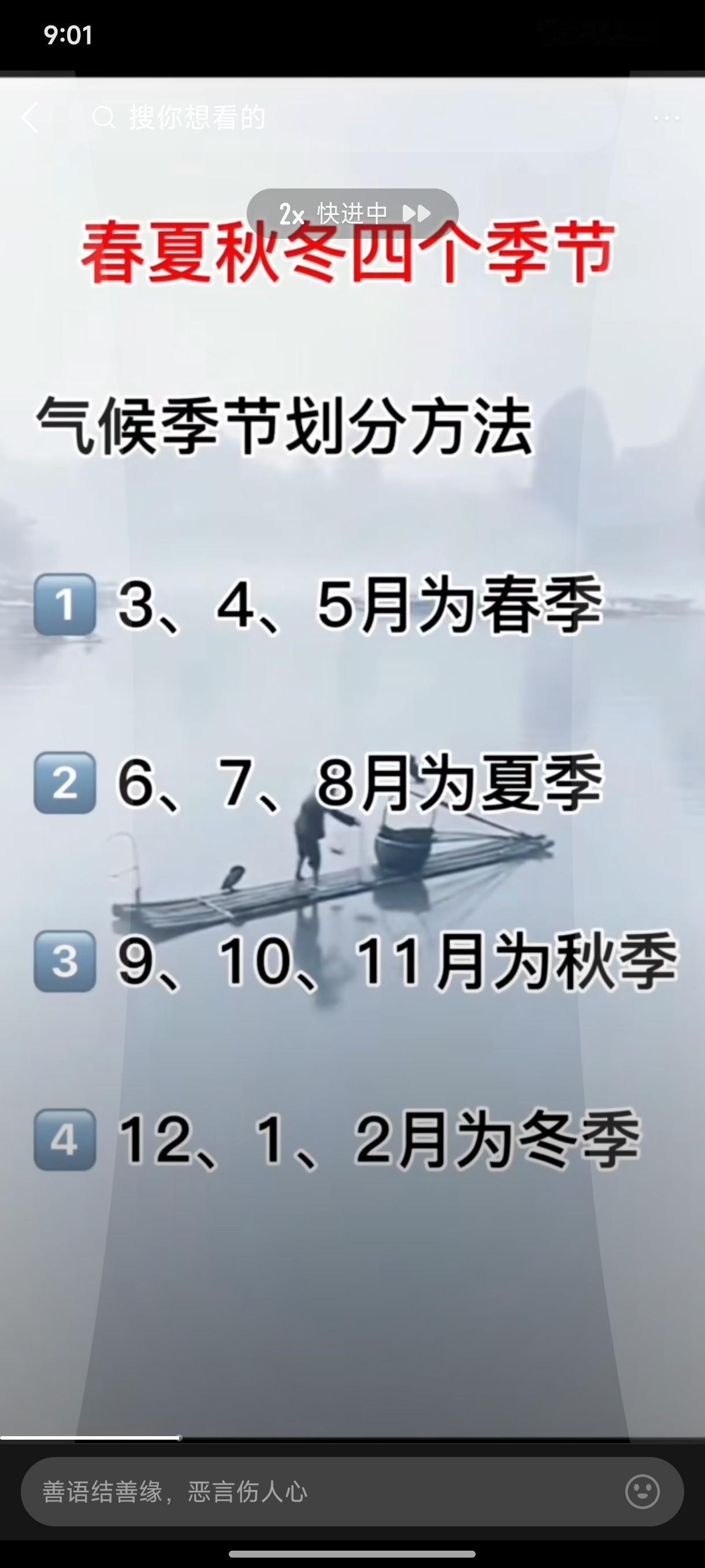 今天陪孩子背古诗《客中初夏》,给孩子讲夏天的时间,张口就错了,小的知识还是在于平常的积累,不能想当然出口![捂脸] 我敢打赌,你现在马上随便找个身边的人问一年四季是怎么划分的,具体指哪几个月份?我相信大部分人都会说错,他们一定会说春季是1、2、3月;夏是4、5、6月;秋是7、8、9月;冬是11、12、1月。