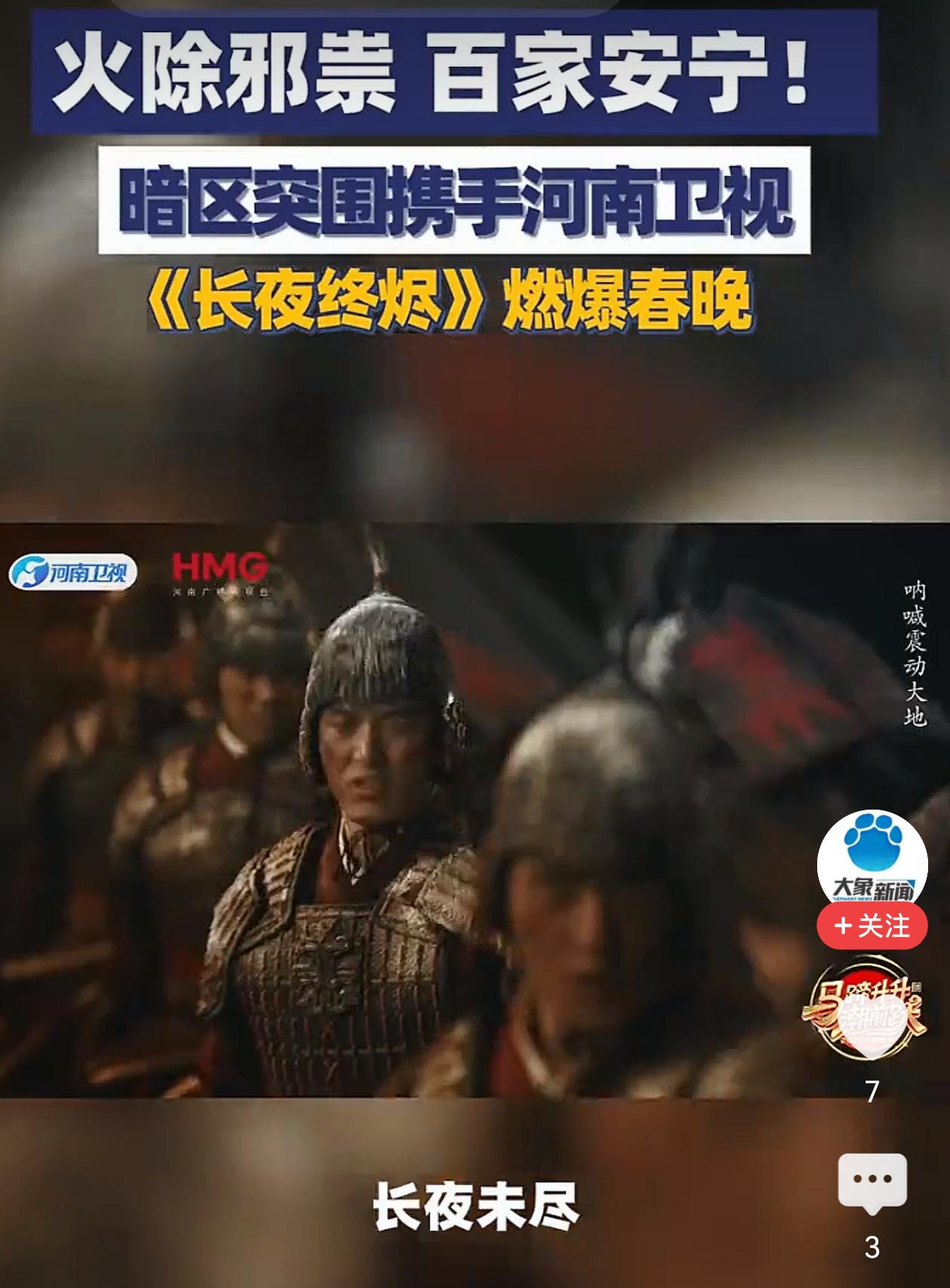 河南春晚就算被弄成这样, 但是光是这两个作品还是碾压某些的,还是封神了!《永乐未央》《长夜终烬》这两个作品已经可以拿出来吊打了,不论是永乐未央的华夏文化中的各路神仙和服饰,还是长夜未烬中的火除邪祟,百家安宁,火中突出的汉字,还有军队的气势! 不管放了多长的广告也好,放了多少明星也好,大家能懂,能看得懂河南卫视春晚的要表现展示的文化内涵,要要向观众表达的意思。 永乐未央,长夜终烬,山河月明!