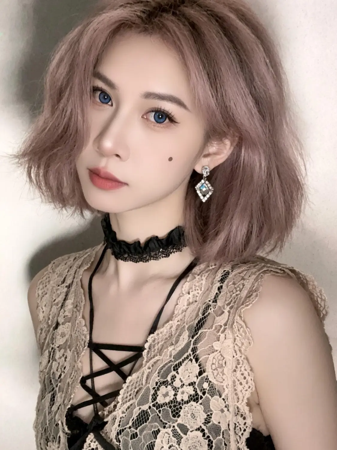 气质短发 初恋发 樱花粉发色 短发小姐姐 一张初恋脸