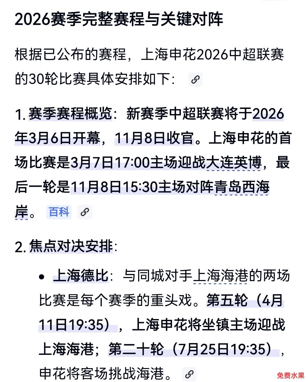 根据赛程爆料申花将在清明后对阵海港!依然是先客场然后主场!这和前两个赛季一样!上赛季客场被海港逼平!本赛季要强势赢下比赛!回到主场再赢下比赛!不管怎样,新赛季申花要在海港身上全取6分!另外申花新赛季首个对手大概率是大连英博!3分也是底线!