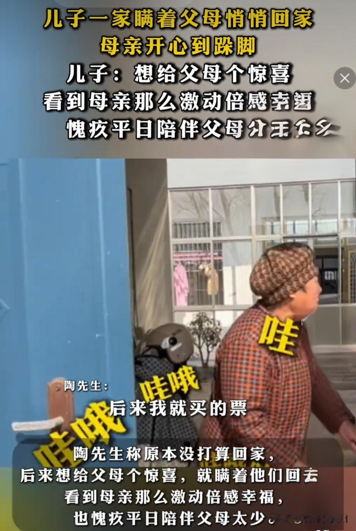 瞒着爸妈回家,老妈的反应看哭全网!这就是我拼了命也要回家的理由! 朋友们,刚才刷到一个视频,真的是一秒破防。 就是那种,儿子一家瞒着父母悄悄回家过年。 推开门的瞬间,妈妈愣在那儿,下一秒,她像个孩子一样,开心得原地跺脚! 就是这几秒钟的画面,我看了一遍又一遍,鼻子酸得不行。 视频里的妈妈,一开始根本没反应过来。 她可能以为是自己眼花了,或者是在做梦。 但等她看清楚,真的是日思夜想的儿子、儿媳,还有小孙子就站在门口时,那种从心底炸开的喜悦,根本藏不住。 她没有冲上去拥抱,而是像个手足无措的小女孩,在原地连着跺了好几下脚,手都不知道该往哪儿放,嘴里就念叨着:“哎呀!哎呀!回来啦!怎么不提前说呀!” 那个瞬间,你能看到妈妈眼里的光,比外面的烟花还亮。 其实你看啊,这就是咱们中国人刻在骨子里的春节情结。 很多人可能会问,为什么非要挤十几亿人的春运?为什么大包小包那么累还要回去? 这一刻,答案全写在妈妈那开心的跺脚里了。 我们总觉得,回家是给父母一个交代。但真相是,不是我们离不开父母,是父母真的离不开我们。 所有的车马劳顿,所有的奔波疲惫,在爸妈看到你那个眼神里,瞬间就治愈了。因为那一刻你知道,这个世界上,永远有几个人,会因为你的出现,开心得像个孩子。 但是朋友们,这里有一个特别戳心的反转,不知道你们有没有想过。 这种“瞒着回家”的惊喜,确实很甜。可反过来看,为什么只有“瞒着”,才能看到父母最真实、最失控的喜悦? 因为平时,如果我们提前打招呼说要回去,爸妈一定会说:“别折腾了,路费多贵啊”,“过年人太多,要不别回了”,“我们挺好的,不用惦记”。 他们总是把思念藏在心底,把委屈咽下去,用“拒绝”来成全子女的“轻松”。 所以你看,父母的爱,有时候是假的。假在嘴里说着“别回来”,心里却盼了三百六十五天。 而我们的孝顺,有时候也是假的。假在总觉得给钱就行,却忘了他们最想要的,就是你突然出现在门口,让他们有机会,像个孩子一样,开心得跺脚。 看完这个视频,我真的想问问屏幕前的你: 你有没有过,悄悄回家给爸妈惊喜的经历? 或者,今年的你,回到他们身边了吗? 如果此刻你就在家,去抱抱那个嘴上嫌你烦,心里却乐开花的老妈吧。 我在评论区等着听你的暖心故事,我也想看看,有多少人的妈妈,见到孩子回家时,会开心得像个孩子一样跺脚。 春节团圆的暖心瞬间 瞒着爸妈回家的惊喜 看哭了 妈妈