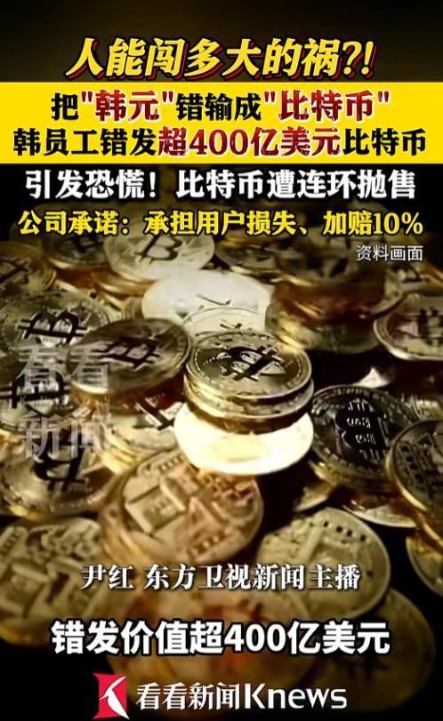 输错俩字送出400亿,就因为员工输错了两个字,这波“手滑”让韩国的一家交易所差点把家底都赔光了。 2月6日韩方第二大加密货币交易所Bithumb推出了一项用户抽奖福利,计划向695名幸运儿发放活动奖励,每人可获得62万韩元,折合下来也就400多美元。 结果负责操作的员工,鬼使神差地把“韩元”错写成了“比特币”。 这一下直接酿成了惊天大错,平台竟给每位中奖者发放了大约2000枚比特币,累计错发数量高达62万枚,按照当时的市场行情来算,这笔钱的总价值已经突破了400亿美元! 当这消息一出平台瞬间炸了锅,有些用户反应快,看到账户里突然多了这么多比特币,立刻疯狂抛售套现。 恐慌情绪瞬间在平台内炸开,比特币价格应声大跌17%,从6.7万美元一路跌到5.5万美元,比国际市场价低出一大截。 好在交易所的警报系统还算灵敏,19:20就发现了不对劲,19:35开始冻结涉事账户,19:40彻底封死了交易和提现,短短20分钟一场差点引发行业地震的危机被硬生生按住了。 到了次日下午,Bithumb对外表示,已经成功追回了99.7%的错发比特币,目前仅有1860枚尚未追回。 对于那些因为恐慌而低价抛售比特币的用户,交易所也大方承担了责任,承诺不仅全额补足差价损失,还额外赔偿10%,这笔约10亿韩元的费用,全部由公司自行承担。 虽然这事看着像个离谱的段子,但背后的问题真的让人后怕,一个小小的输入错误,就能撬动400亿的资产,说明这个平台的风控和内控简直是形同虚设。 不仅没有多级审核,也没有异常拦截,就这么让一个人的失误差点拖垮整个公司。 眼下韩方的金融监管部门已经正式介入,不仅要对Bithumb进行彻查,还要给整个加密货币行业做一次全面的风险排查。 说到底,这起“手滑乌龙”,就是给整个虚拟资产行业敲了一记响亮的警钟,在缺乏严格监管和内控的情况下,再大的平台也可能因为一个人的失误,瞬间坠入深渊。