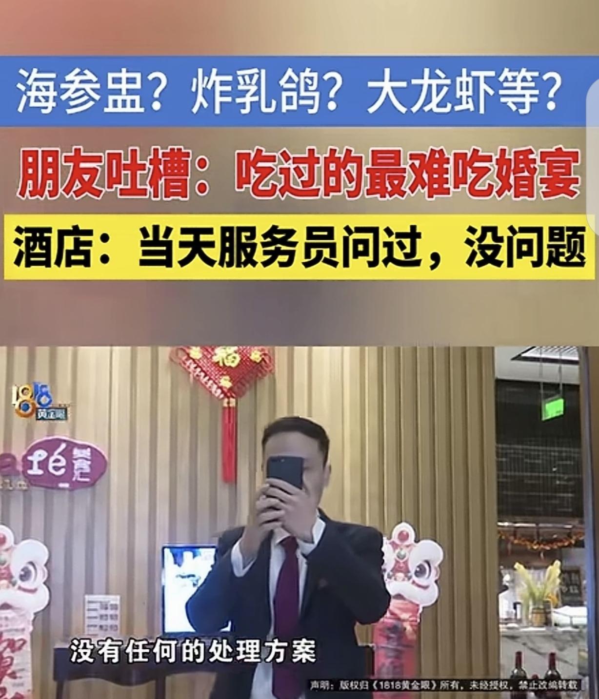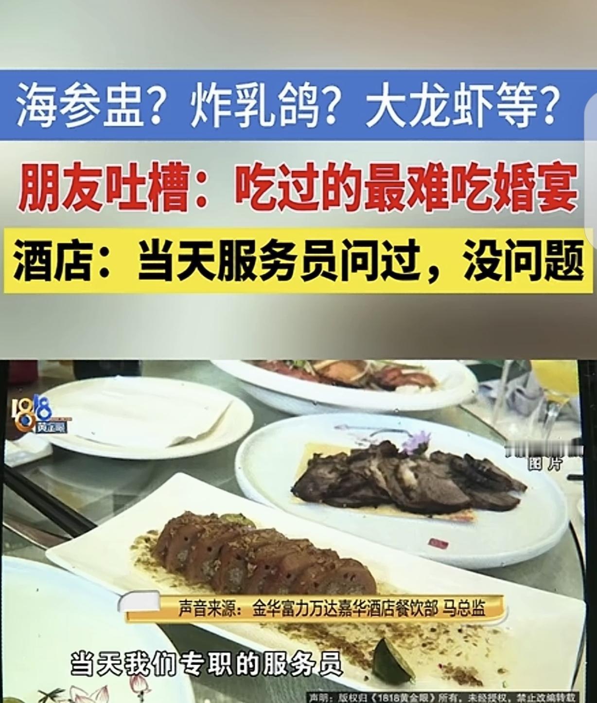“太坑了!”浙江金华,一女子结婚,她花43868元办了11桌婚宴,每桌20道菜高达3988元,有海参盅,炸乳鸽,波士顿龙虾,可菜上来,宾客傻眼了,牛肉咬不动,龙虾小的可怜,螃蟹是死的,大多数菜都是凉的,宾客异口同声说:这是吃过最难吃的婚宴!女子颜面扫地,她愤怒的找酒店理论,经理却气急败坏的说:你录像,我也录!总监:我们的菜是50-60度,你说什么属于热?这只是你个人的感觉。女子要求退5000元,酒店却只给2000代金券。 2025年1月13日,黄女士披上了婚纱,嫁给了自己最爱的人。 在婚宴上,黄女士也不准备省钱,毕竟她一生只举行一次婚礼,让前来送祝福的宾客吃好喝好,才是最重要的。 黄女士选择了一家富丽堂皇的酒店办婚宴,觉得很有面子,当然了,菜品上她也不含糊,订了11桌每桌20道全是硬菜,价格3988元,一共花了43868元。 按理说,定婚宴前是需要试菜的,但黄女士觉得,试菜还要花钱,而且,婚礼前需要准备的东西太多,她也分身乏术,她相信这么高端的酒店,肯定不会把她婚礼搞砸了。 黄女士提出要求,让主菜由厨师长做,菜必须要热热乎乎,毕竟是大冬天的,别菜是凉的,宾客吃了胃不舒服。 而且。食材必须要新鲜,宾客吃完闹肚子,上吐下泻那不就不麻烦了吗。 而且,菜的味道得说的过去,虽然众口难调,但不好吃,起码不能难吃,被议论纷纷,自己钱花了,面子丢了,她不允许这样的事发生。 可万万没想到,婚宴结束后,黄女士傻眼了,宾客给出的评价说这是他们吃过最难吃的婚宴,色香味一个都不占。 黄女士表姐告诉她,整个婚宴下来,她几乎没怎么吃,走的时候还是饿着肚子饿,因为,螃蟹是死的,不新鲜了,牛肉硬的咬不动,龙虾小的不得了,关键菜大部分都是凉的,吃到胃里不舒服。 黄女士气炸了,联系记者,怒气冲冲来酒店理论,可经理不但不做任何解释,对于记者拍视频记录的行为恼羞成怒,还拿出手机说:你们拍,我也拍! 记者又联系了总监,总监也觉得黄女士吹毛求疵一口咬定他们的菜品50-60度是有的,每个人对凉和热的感知不一样,他质问黄女士多少度的菜才叫热菜? 而且,对于食材的问题,总监也说问过酒店了,没有问题,是黄女士无中生有。 对黄女士提出退还5000元餐费,总监觉得这不可能,顾客说菜不满意就来要赔偿,那酒店还开不开了?不能惯这毛病。 主厨也觉得委屈,他认为自己只负责监控,不可能每道菜都亲自煎炒烹炸,认为黄女士不讲理。 黄女士很愤怒,说既然主厨不能每道菜都亲自掌勺,为啥当初给承诺?后来又一口咬定,好几道菜都是他做的,如今又说他只负责监工? 目前,双方还在协调,对赔偿金额没达成一致。 有人说,烧的明白都是预制菜,吃的也明白就是预制菜。就是要退几个钱吧!众口难调?价格没谈拢吧! 高端宴席,体现的是菜品名高端,就餐环境上档次,要的是请客者觉得有面子。至于味道嘛,好像并不那么重要。 黄女士这场婚宴办得着实闹心,本想风风光光,结果却颜面尽失。 酒店方面问题很大,既然承接了婚宴,就该按要求提供服务。 黄女士明确提出菜品要热乎、食材新鲜,酒店却没做到,还强词夺理,经理和总监的态度更是恶劣,这哪是解决问题的样子。 主厨说自己只负责监控,那当初承诺主菜由厨师长做又怎么说?这明显是自相矛盾。 酒店不能只想着赚钱,而不注重服务质量和消费者体验。黄女士花高价办婚宴,结果菜品质量差,要求退还部分费用合情合理。 消费者花钱是为了享受服务,不是来受气的。酒店应该反思自身问题,积极与黄女士协商赔偿,而不是一味地推诿责任。 这件事也给其他酒店提了个醒,要想在市场上立足,就得把服务做好,诚信经营,不然迟早会失去消费者的信任。 《消费者权益保护法》第24条规定,经营者提供的商品或者服务不符合质量要求的,消费者可以依照国家规定、当事人约定退货,或者要求经营者履行更换、修理等义务。 在此案例中,酒店提供的婚宴菜品存在质量问题,如食材不新鲜、菜品温度不达标等,不符合黄女士的要求。 黄女士有权要求酒店退还部分餐费,酒店不能以各种理由拒绝,否则就侵犯了消费者的合法权益。 对此,你怎么看?
