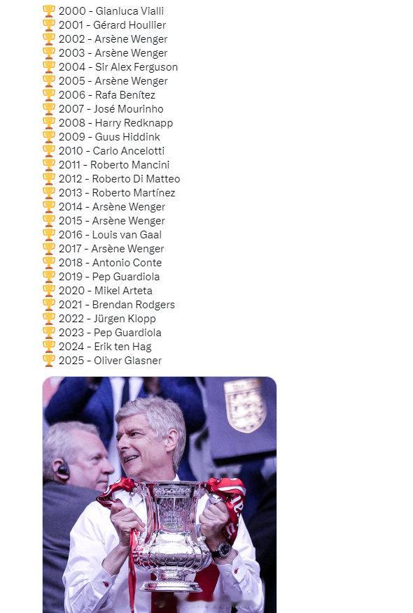 2000年以来每一位夺得足总杯冠军的主教练 阿森纳 阿森纳著名教授