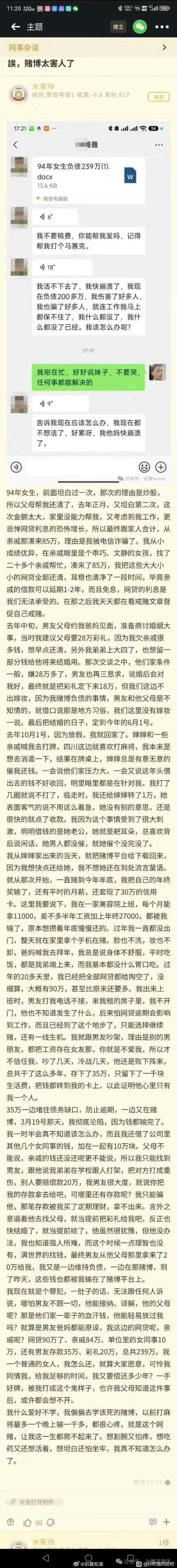 看完了,太震惊了!94年的大龄剩女赌博上瘾,欠了239万!为了骗男朋友的钱和男朋友父母的钱,满嘴谎言,男朋友一家被坑惨了!