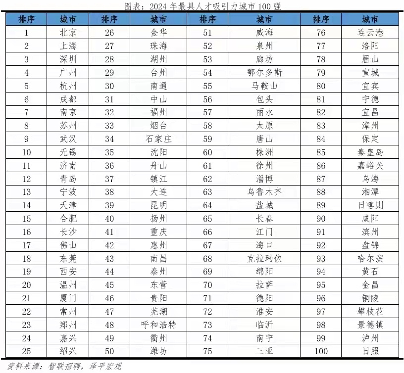 人才吸引力排行榜,基本就是一线+省会+长三角+大湾区。
