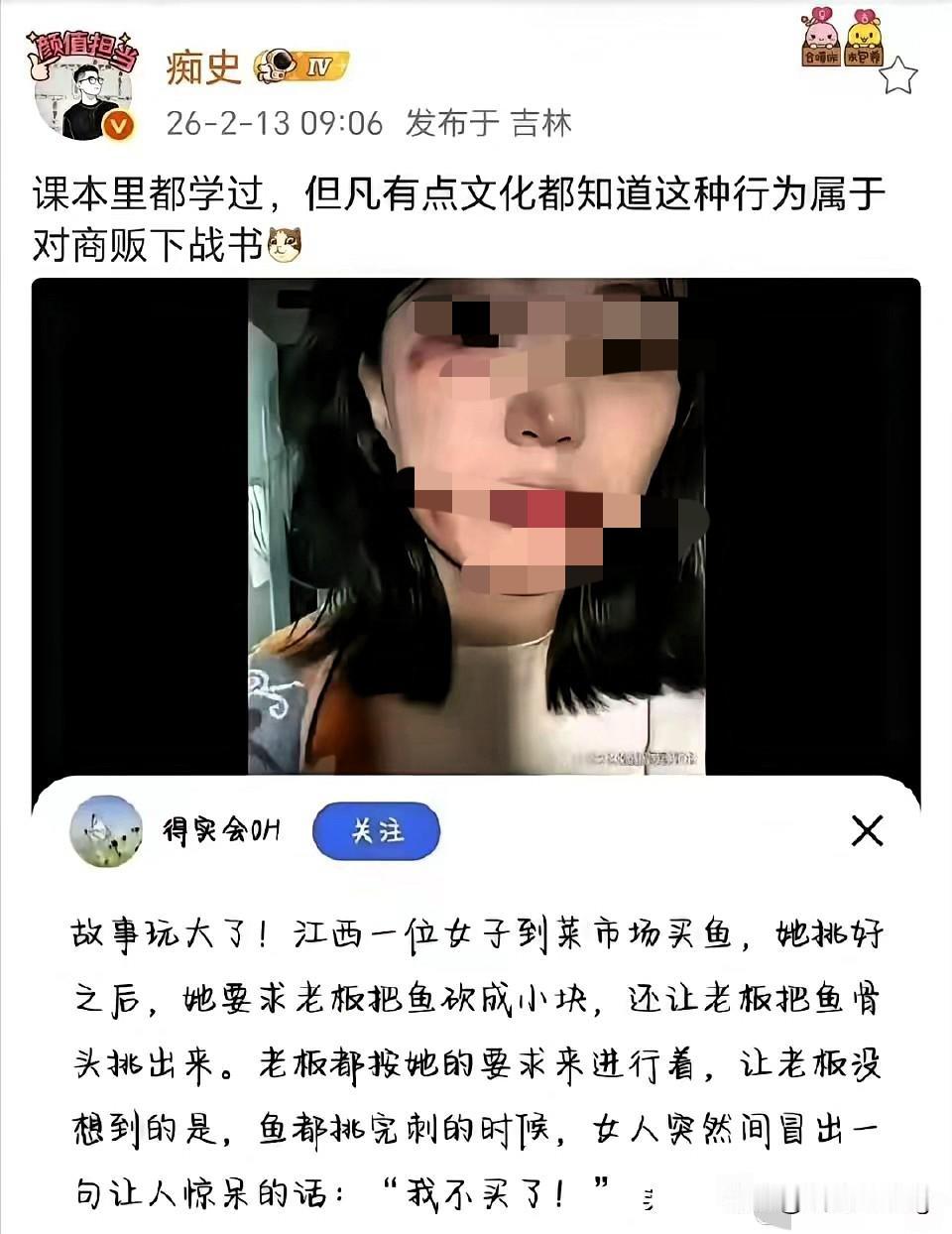 真解气!遇上这种故意刁难人的主,谁都忍不了! 一个妇人到鱼摊前,嚣张地让摊主挑肥鱼,还要求剁成小块、剔干净所有鱼刺。摊主辛辛苦苦忙活半天,累得手都酸了,她却看都不看,转身就要白嫖走人。 摊主拦着要钱,她还倒打一耙,撒泼耍赖说是摊主自己手快,摆明了就是恶意消遣人。围观的人都看不下去,纷纷指责她太过分。 好好的生意被糟蹋,换谁都会怒火上头。尊重是相互的,你不把别人的劳动当回事,就别怪别人不给情面。 这种无理取闹的人,你觉得该不该治一治?