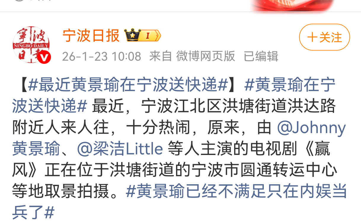 黄景瑜︱《赢风》︱路透讯息有人放图说中通总部为配合黄景瑜新剧拍摄把总部Logo改成『迅通速递』了!是的是的!虽然卢云翔帅得像偶像剧,其实这部剧是讲民营快递行业崛起的创业剧,取材“三通一达”!之前宁波日报还发过在圆通物流中心取景! 连中通都被黄景瑜拿下了