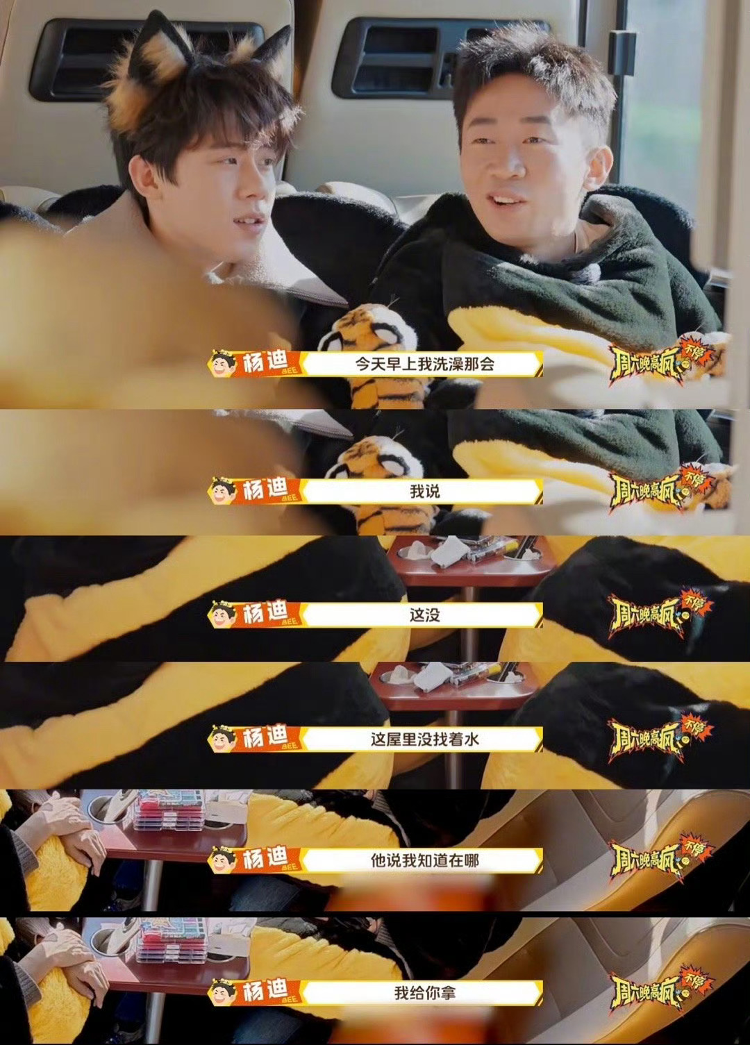 魏大勋主打一个有求必应杨迪洗澡时随口跟魏大勋说没找到水,下一秒魏大勋就超热情地