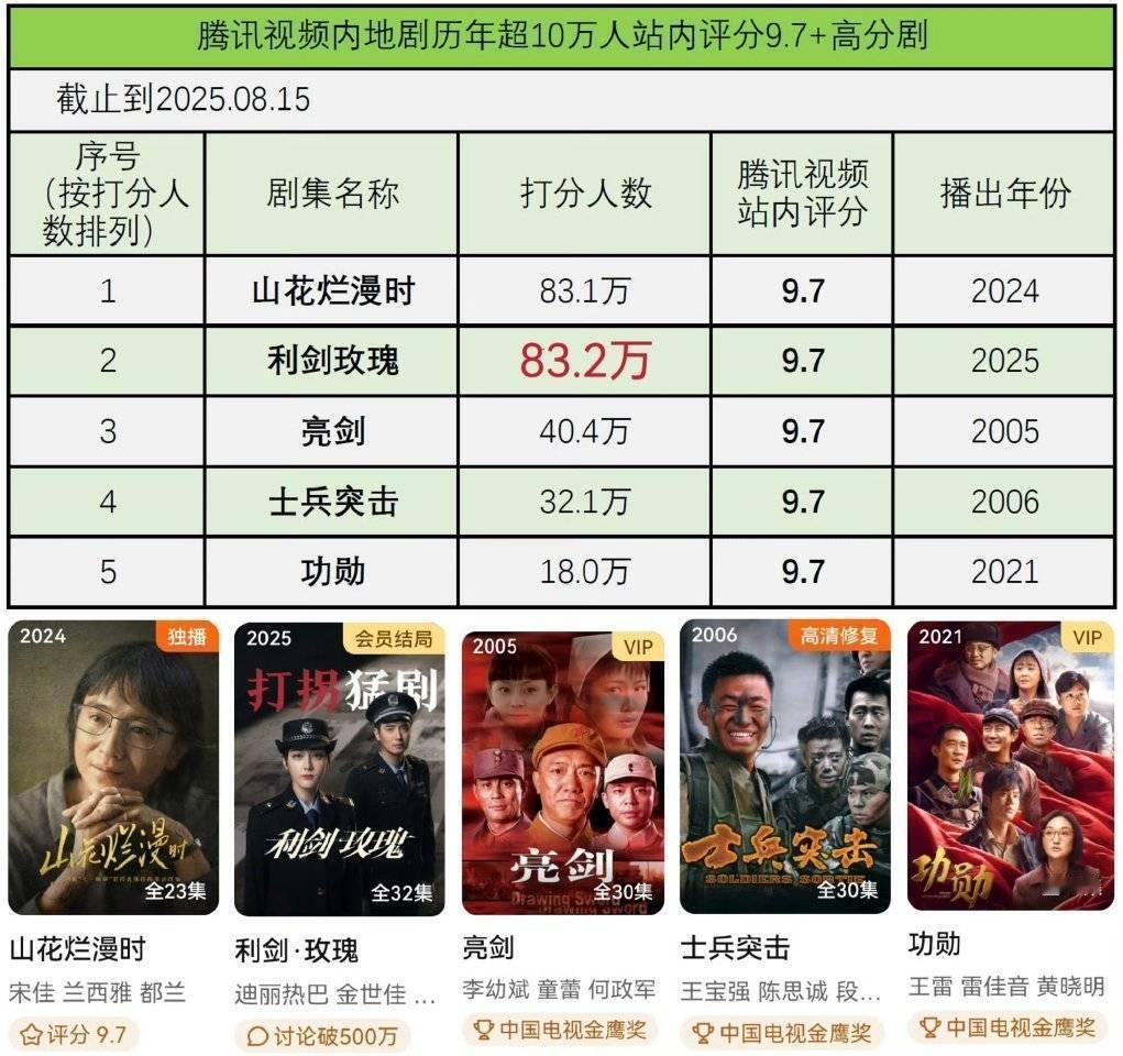 腾讯站内历年超10万人打分+高分剧迪丽热巴 利剑玫瑰 含金量还在上升❗️