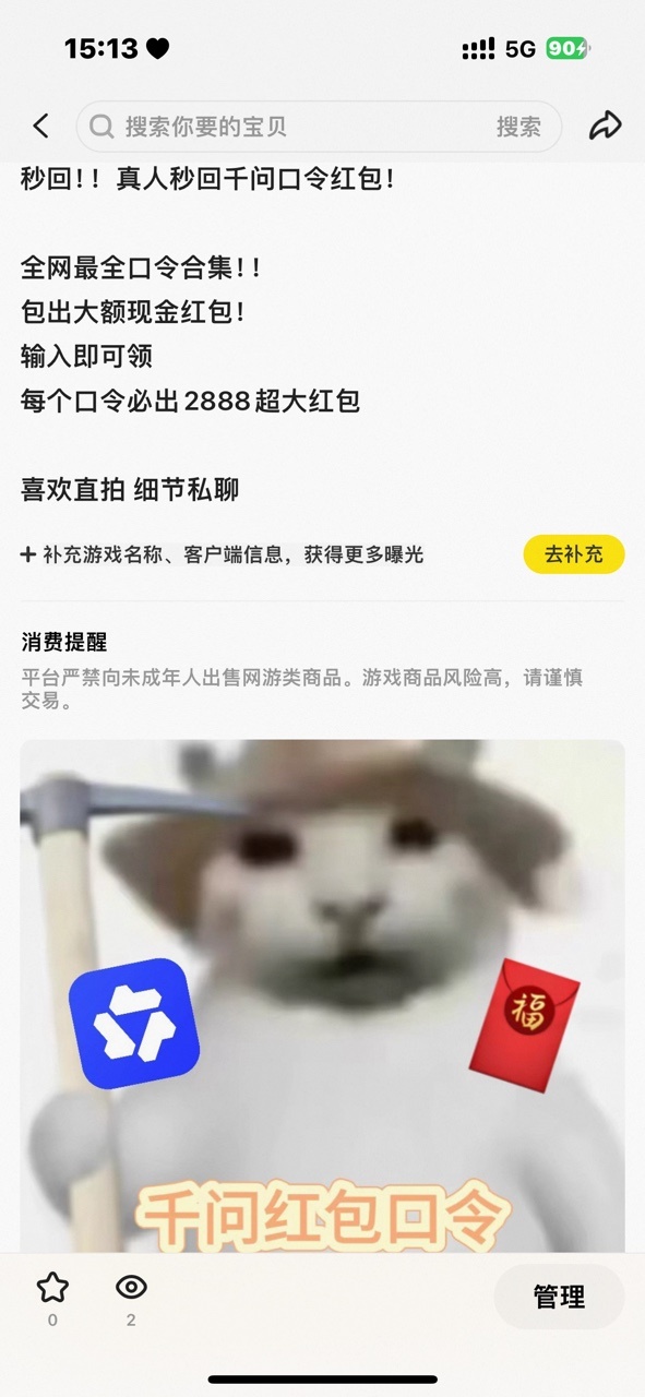 没想到!这波居然在闲鱼赶上了?刷闲鱼看到在好多人出千问红包口令合集,才发现千问这一波每个口令都必开出2888!千问果然是实力派来的!听说还有更多IP联名口令等我们去挖掘,要是都拆了得有多少呀!刷到速冲!千问口令红包