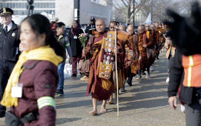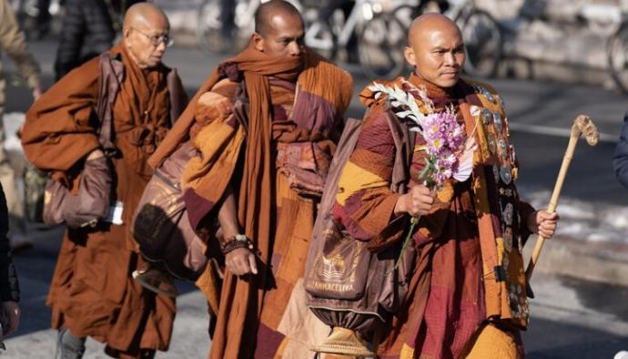 19名佛教伴僧侣,在严寒冬季历时15周,徒步约3700公里,从美国得克萨斯州沃斯堡行至华盛顿特区的”和平步行“活动终于结束在2月11日结束。 他们穿越了九个州,完成了“和平行走”活动,目的是通过正念来促进和平。他们的旅程于2025年10月26日开始,加入他们队伍的还有一只名叫Aloka的救援犬。这一行,沿途收获众多民众拥戴,并在网络上引起了数百万人的共鸣。 值得一提的是,去年11月,在休斯顿,一场事故导致两名僧侣受伤,其中一人被截肢。
