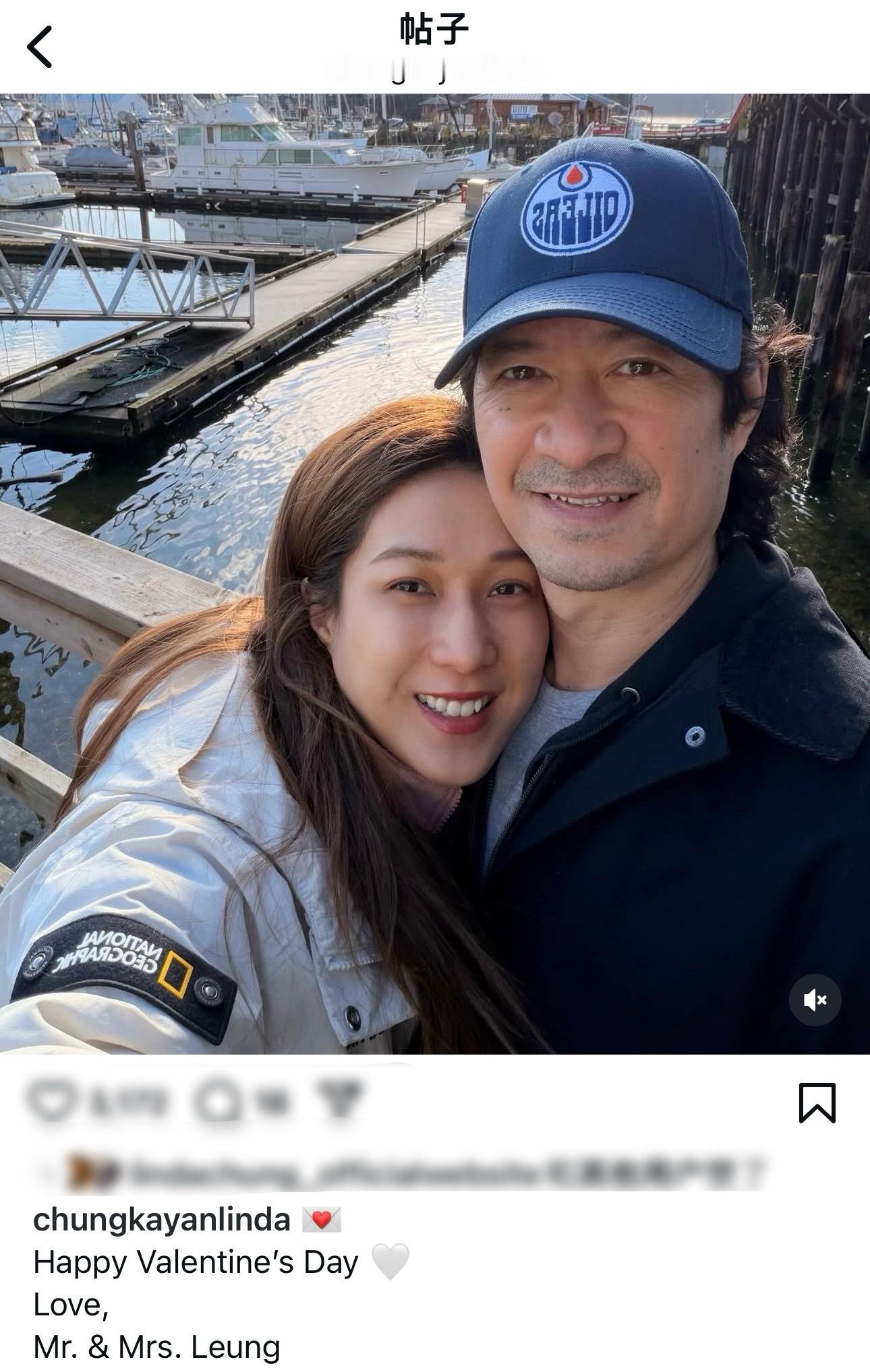 钟嘉欣晒与老公合照:HappyValentine’sDay