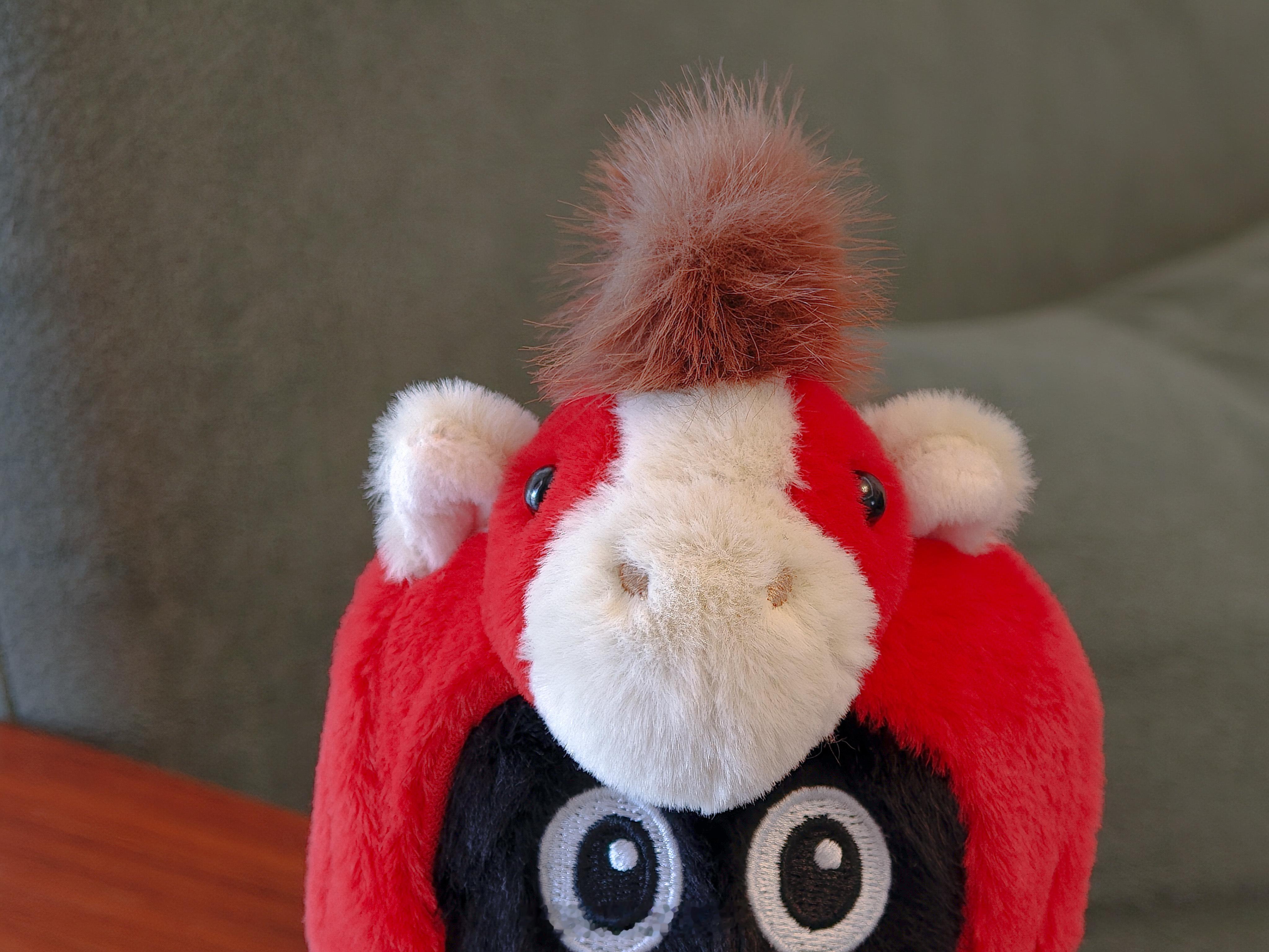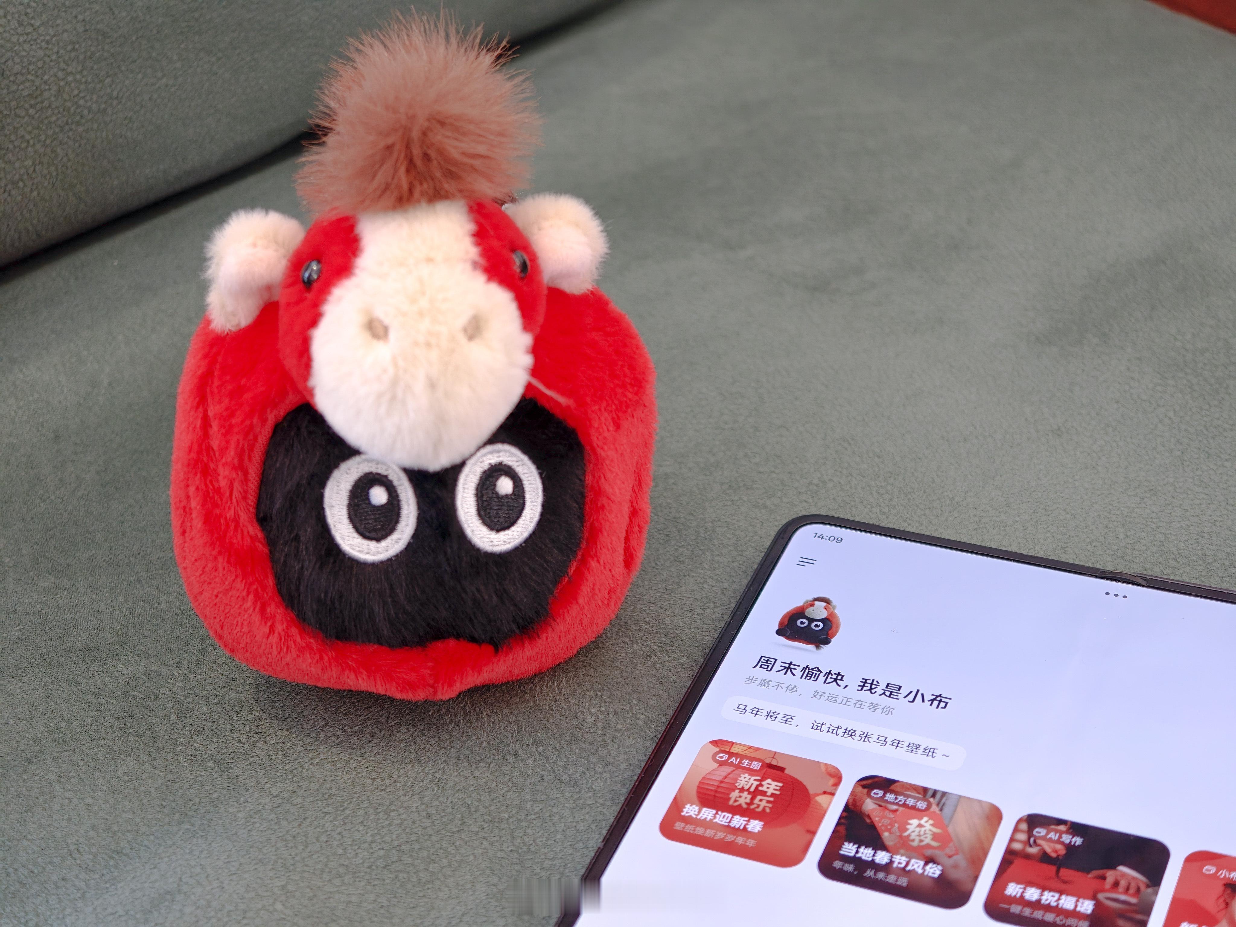 收到了 OPPO 的新年礼物,针对马年定制的玩偶“马布点”,红黑配色很讨喜,手感也摸着软乎乎的,摆在桌上很喜庆。