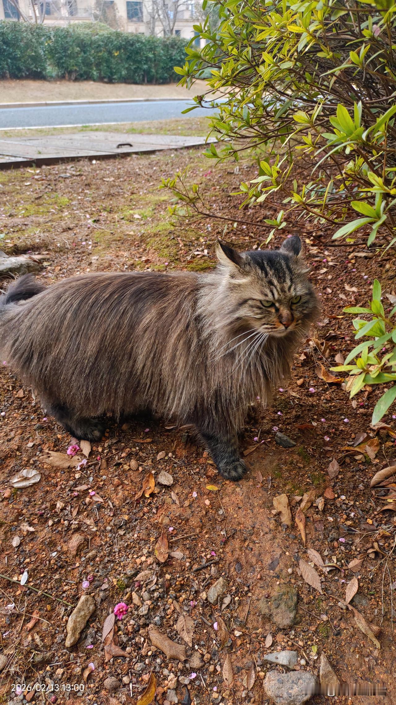 杭州 杭州身边事 图一是我投喂的猫咪,取名“威威”,我戴着帽子和口罩,全副武装,他也认识我,只需一声呼唤,他就欢快地跑着叫着奔过来。 楼下的山茶花全开了,紫的,粉的,白的。 最夺目的是类似桃花的花,我也不知道学名是啥,挂满枝头,朵朵簇簇,那叫一个绚烂。 杭州的春天来得真猛真快!