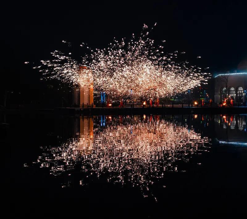 山东省诸城市元宵节 火树银花耀碧天,龙城鼓乐庆团圆。 长街灯影层层亮,闹市笙歌处处传。 狮舞翩跹呈瑞彩,人潮涌动贺丰年。 千家共赏元宵月,笑语春风满陌田。