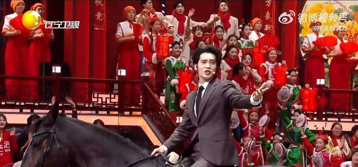 辽宁春晚于适骑马出场于适一袭西装策马踏歌出场,真白马王子没错了,期待今晚的精彩舞