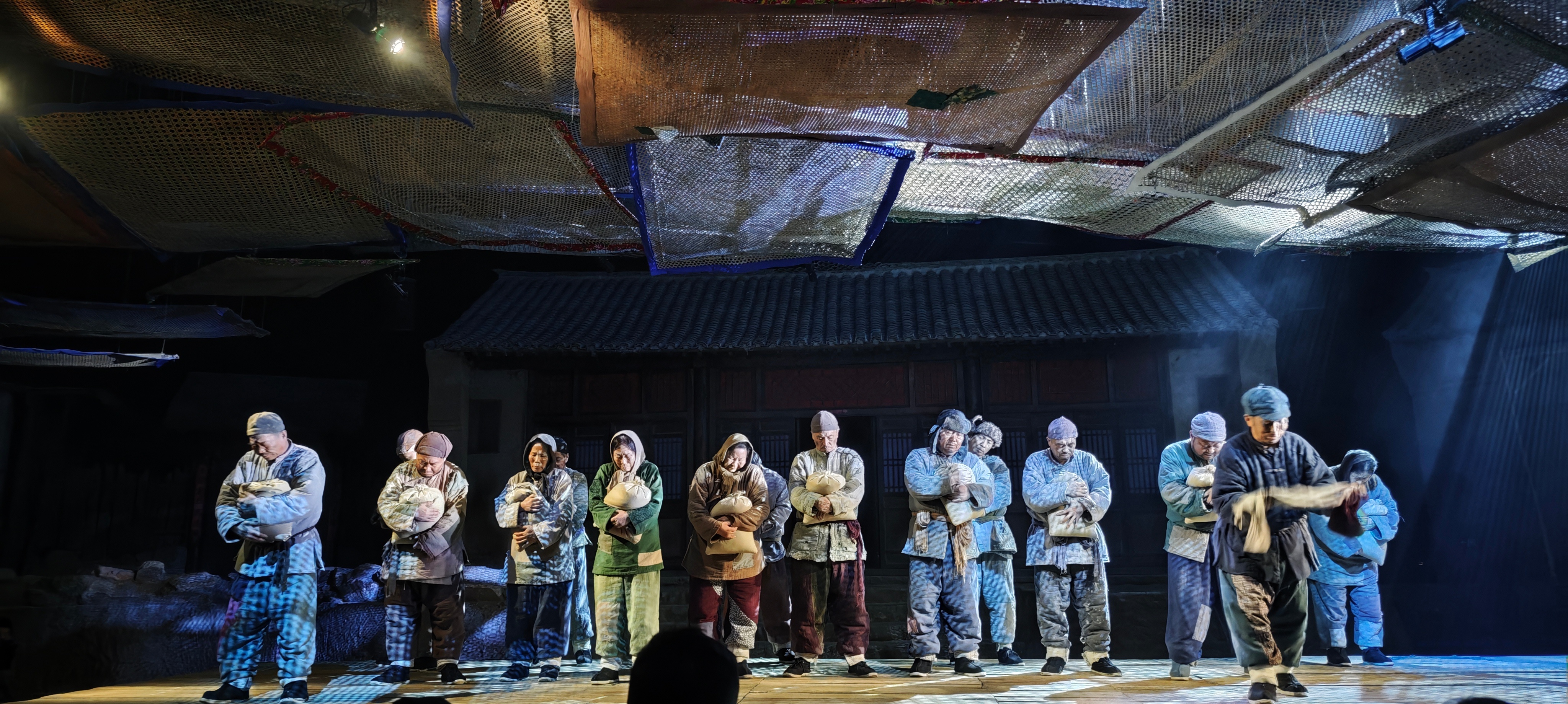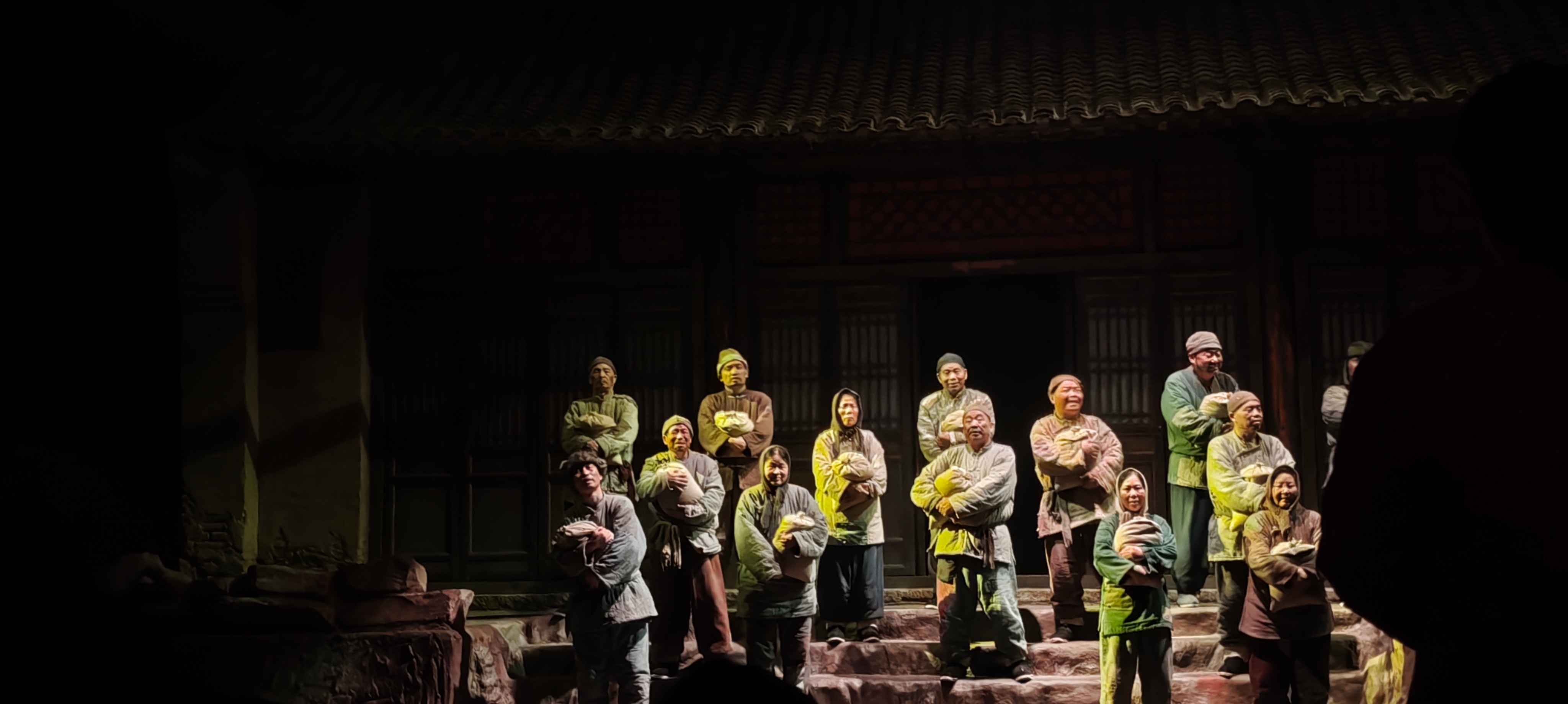 演员演得极好,观之动容,场景不断切换,大家每看一场要换一个舞台,同行的河南观众,大半边走边哽咽,不少人悄悄擦泪哭泣。