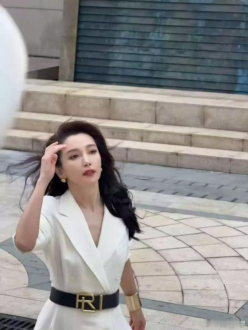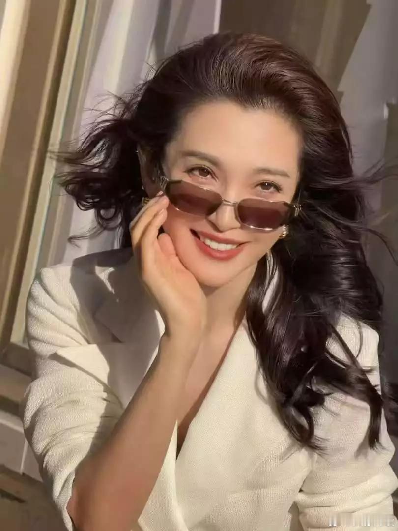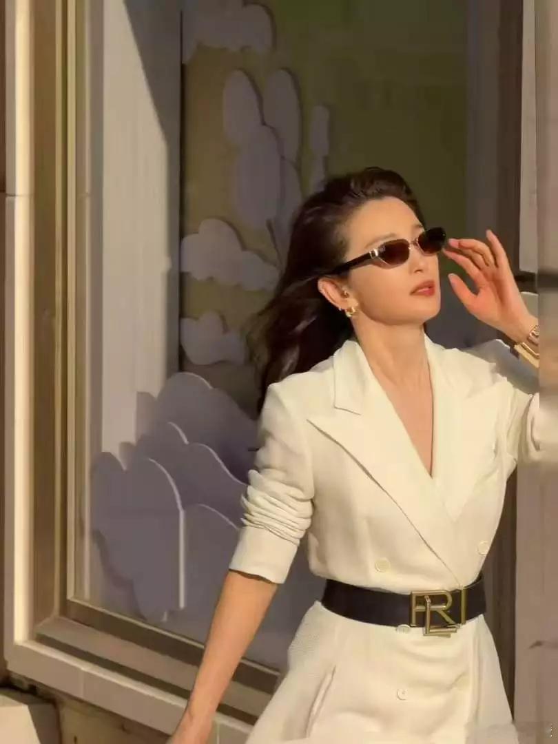 文亦娱乐李冰冰穿白西装裙配慵懒卷发温婉大气一颦一笑自带岁月优雅