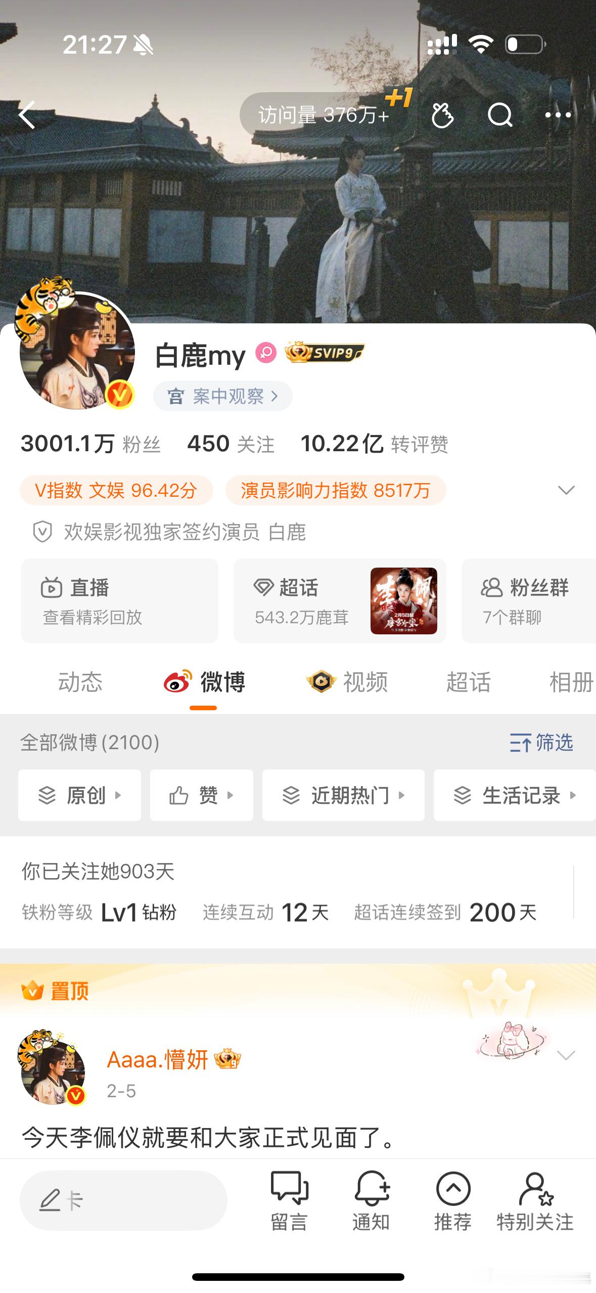 白鹿播剧真吸粉阿,3000w粉丝了