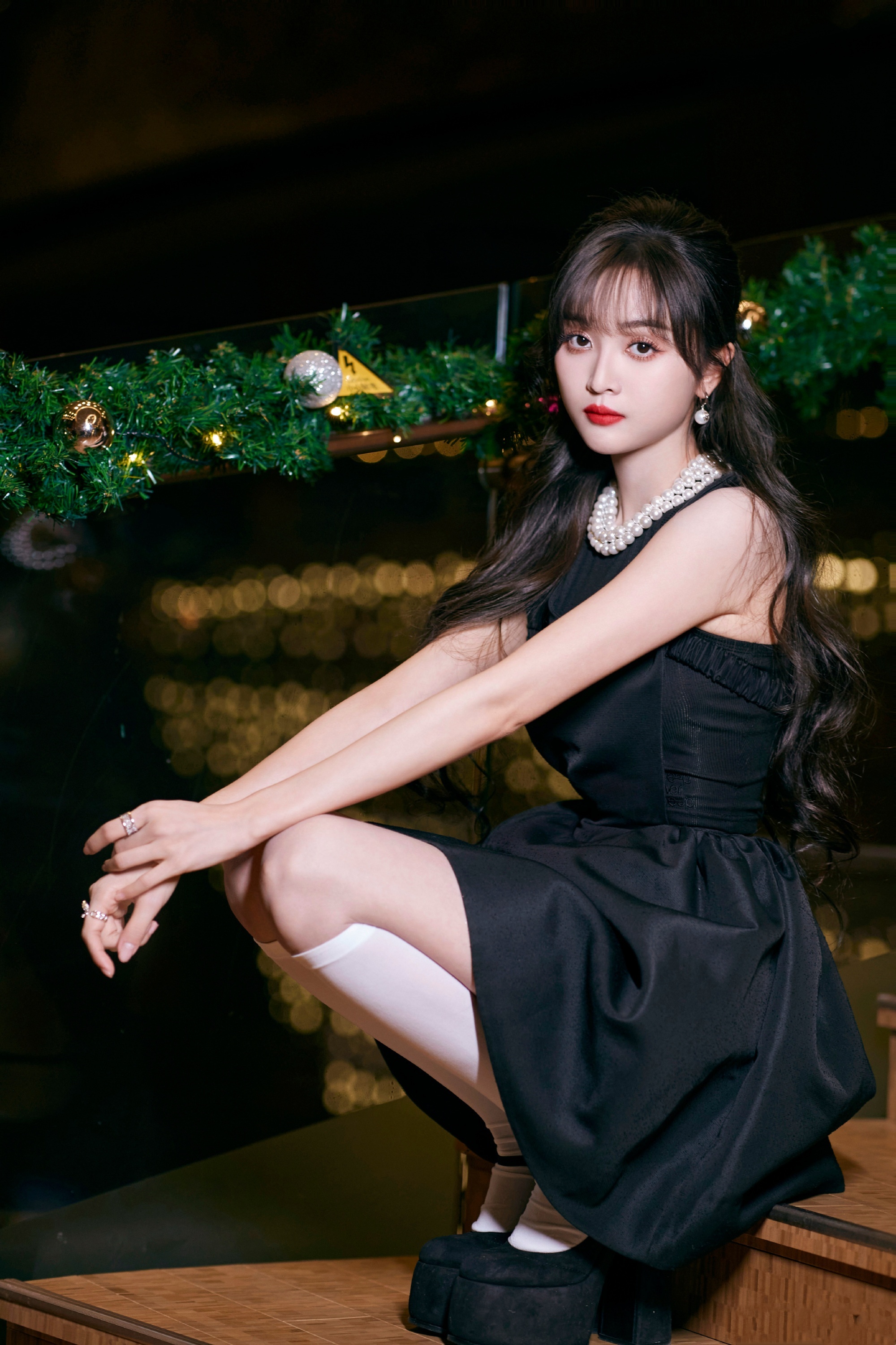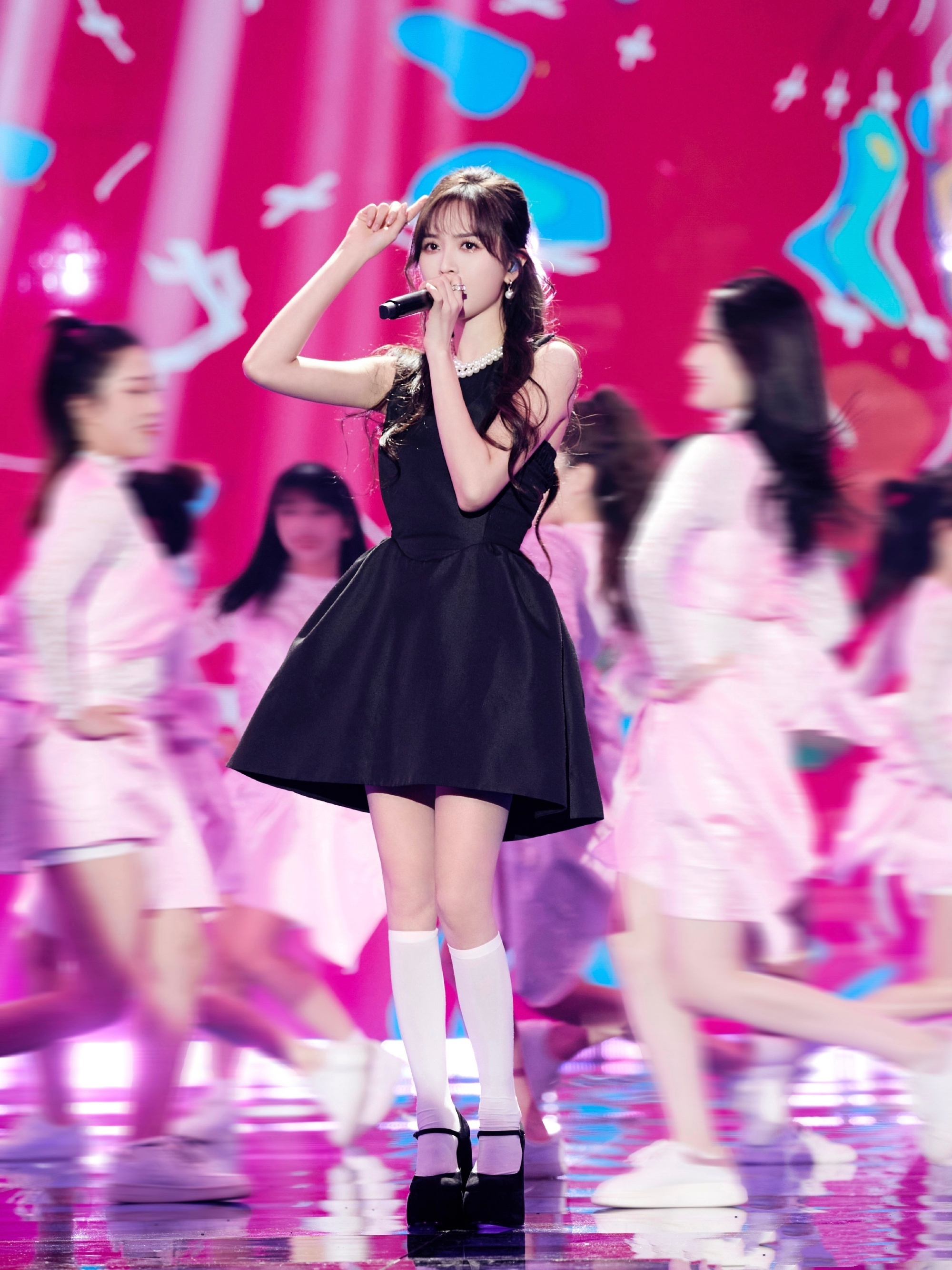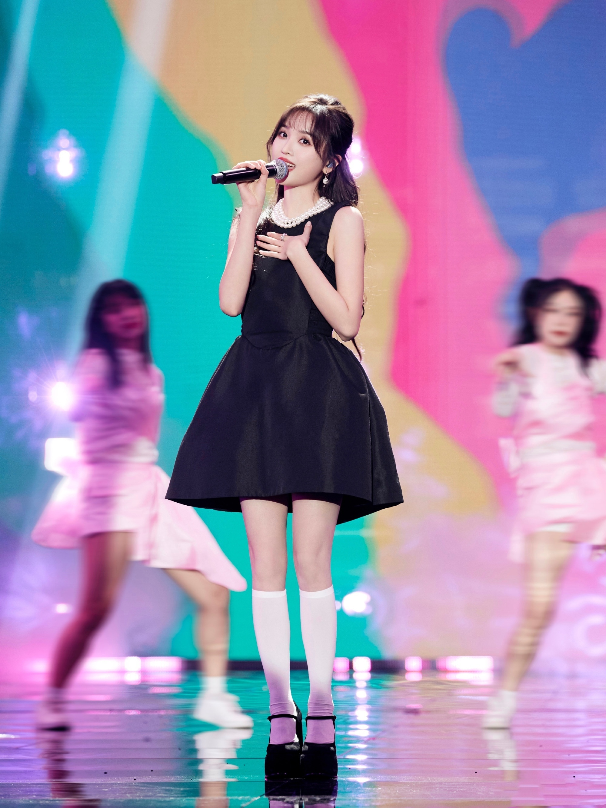 吴宣仪好会穿搭,黑裙子白袜子,这笑容甜而不腻。吴宣仪