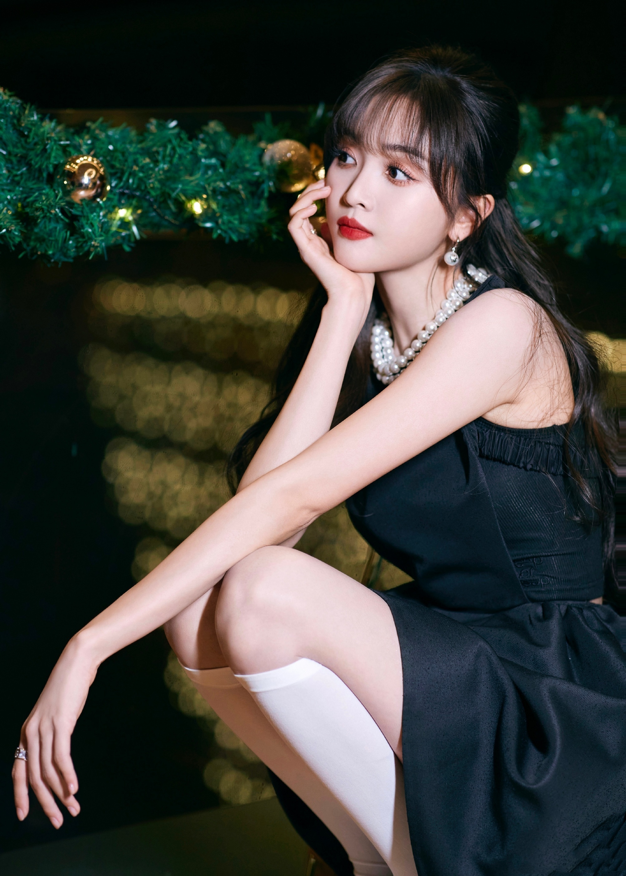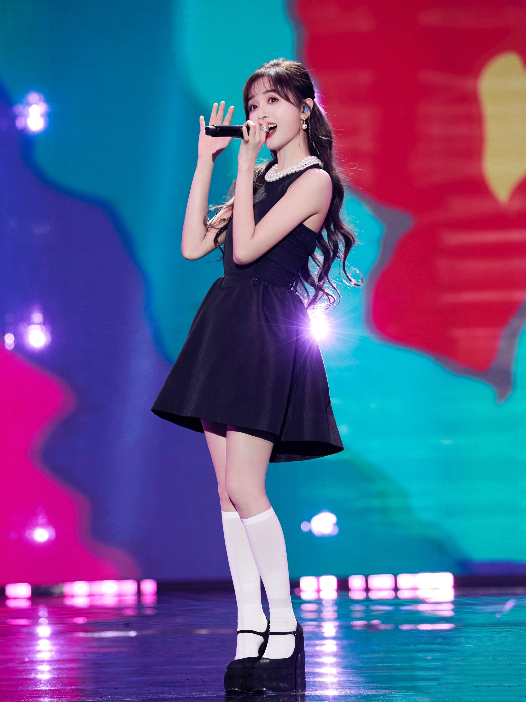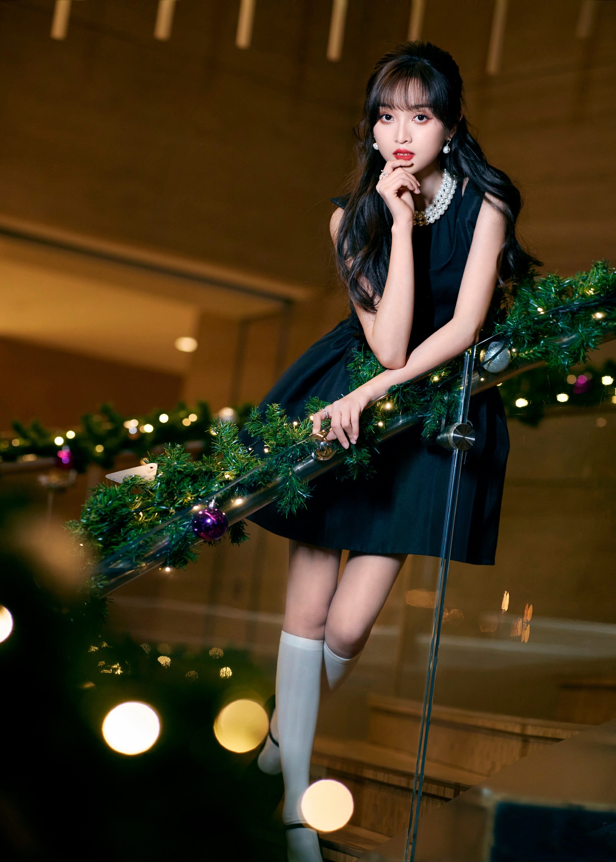 吴宣仪好会穿搭,黑裙子白袜子,这笑容甜而不腻。吴宣仪