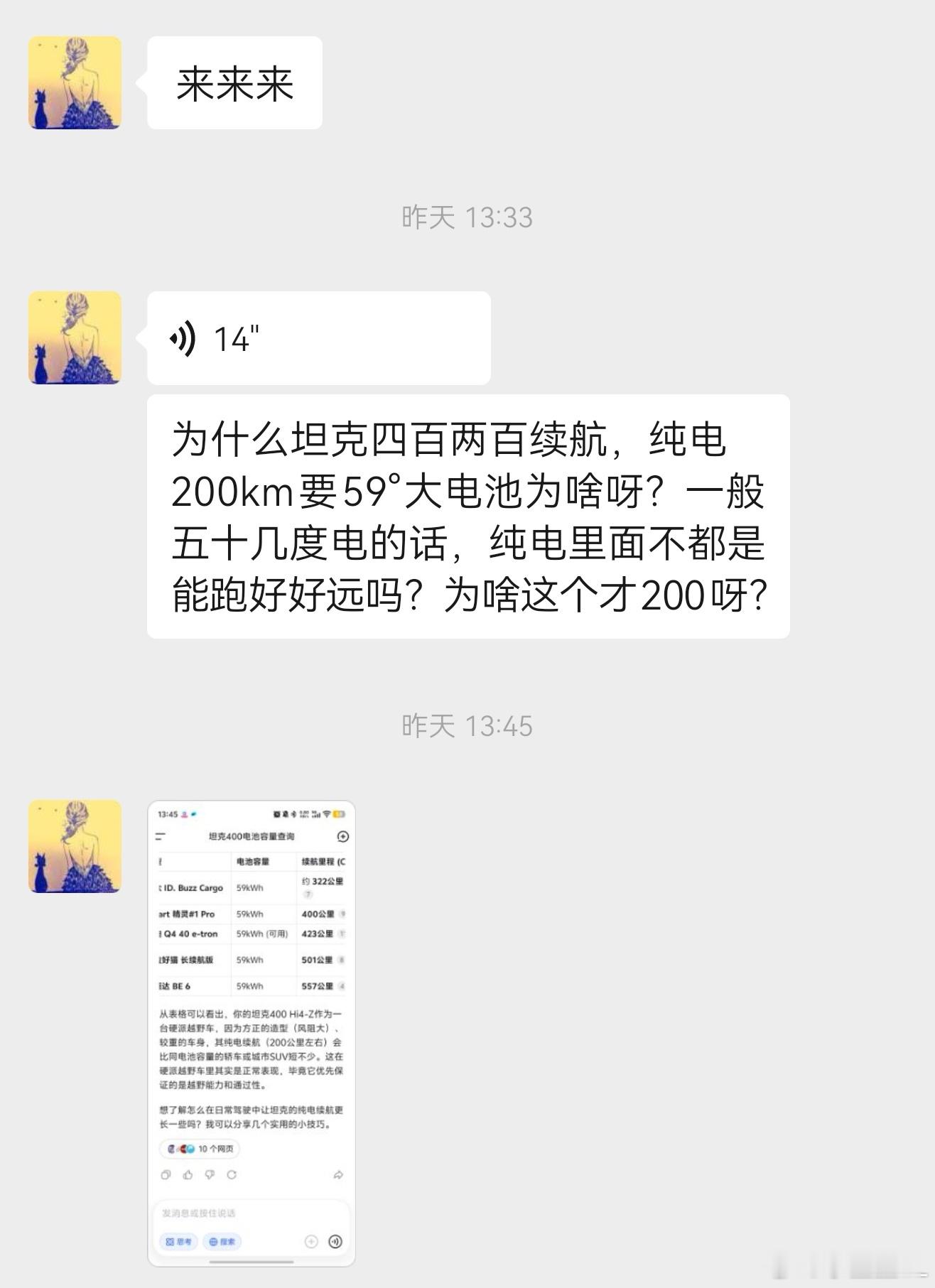 朋友想买台坦克400Hi4-Z,问了我一个灵魂问题:“为啥59度电池才跑200公里?”