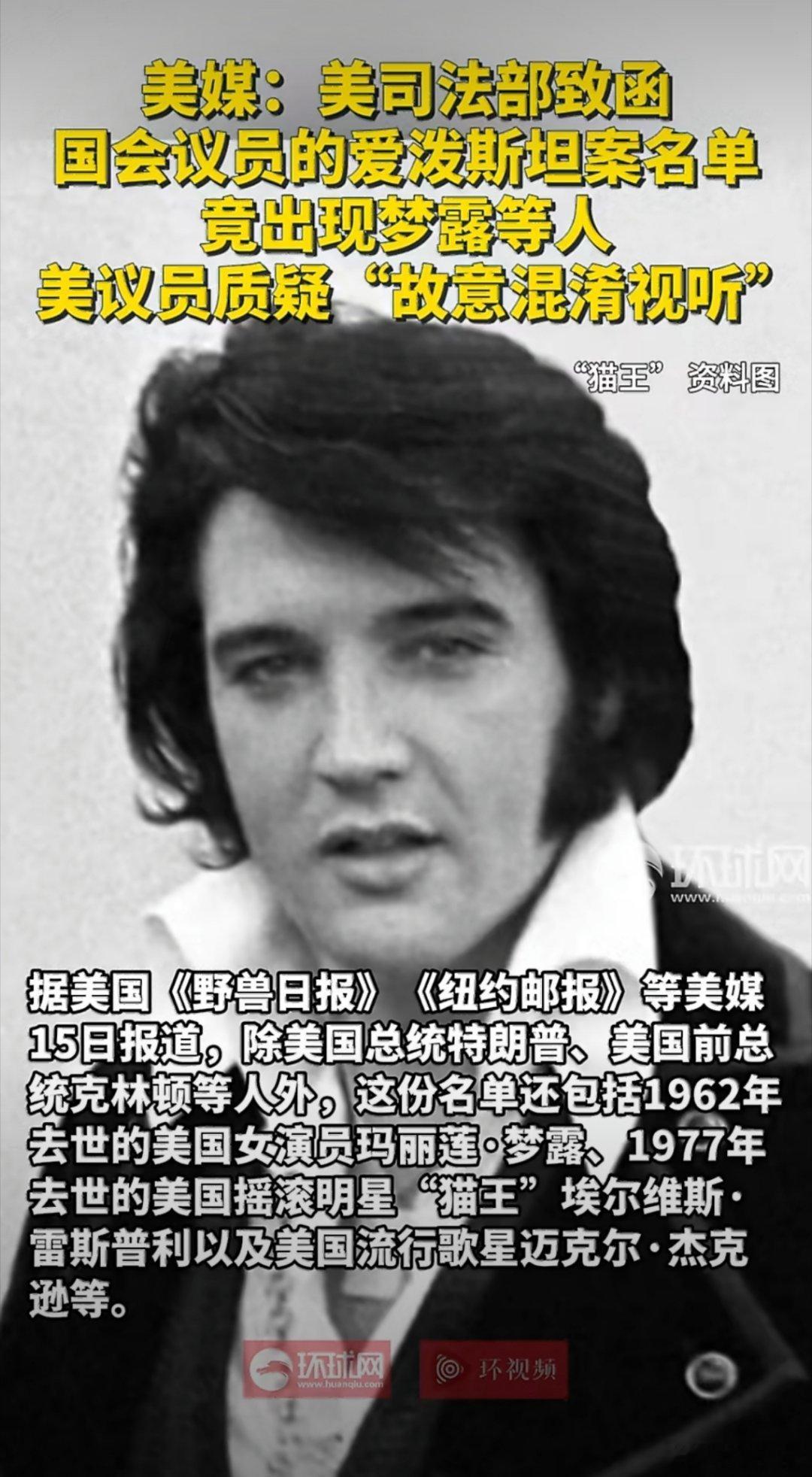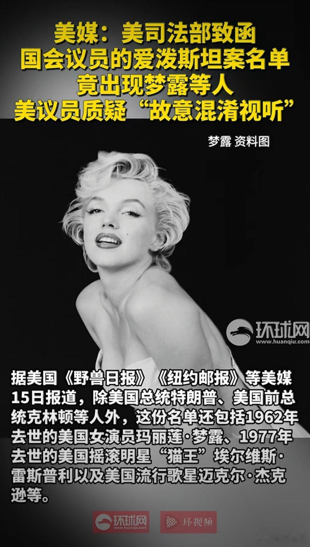 爱泼斯坦案惊现梦露猫王,美式司法公然搅浑水美国司法部公布的爱泼斯坦案名单,竟混入早已去世数十年的梦露、猫王等无关名人,不分涉案与否一锅乱炖,被议员直指故意混淆视听。这份草率名单用大量无效信息稀释焦点,模糊真凶与路人,本质是用信息污染掩护权贵、掩盖黑幕。所谓透明法案沦为遮羞布,美式法治的虚伪与双标,在这场闹剧里暴露无遗。爱泼斯坦案名单竟出现梦露等人