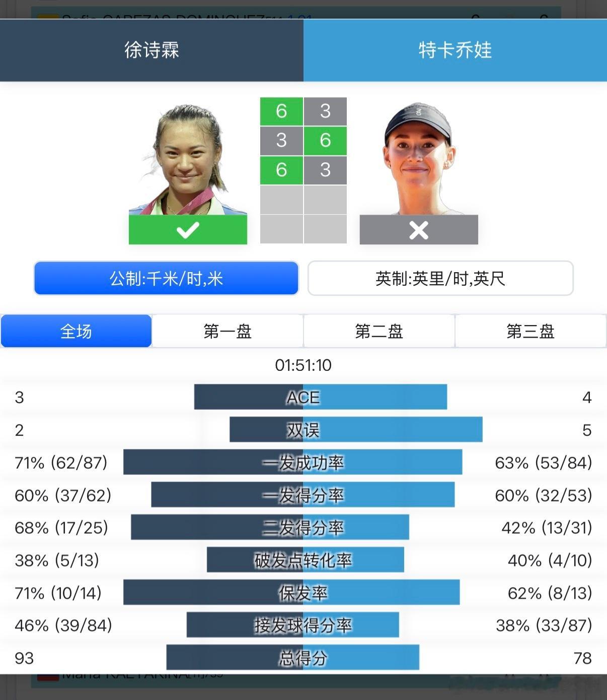 🔵WTA125米德兰女单资格赛首轮✅🇨🇳徐诗霖6-3/3-6/6-3击败【7】🇷🇺特卡乔娃闯进资格赛决胜轮