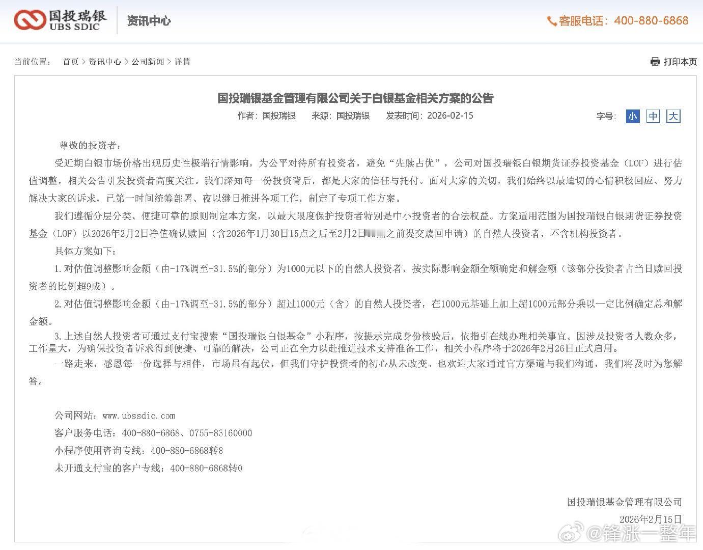 国投瑞银基金制定专项工作方案 国投白银LOF补偿方案维护中心投资者权益,积极赔