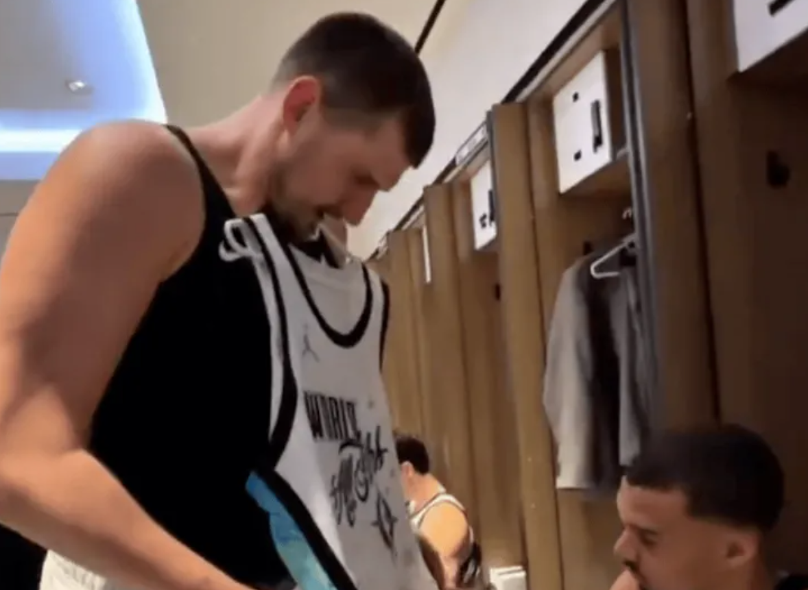 在全明星正赛中,美国新星队大胜美国条纹,获得2026年全明星正赛胜利,而世界队两场比赛全部输球。 之后NBA官方晒出图片和视频,在更衣室里,掘金球员尼古拉-约基奇向马刺球员维克托-文班亚马要了一件签名球衣。 在文班亚马签名之后,约基奇对他说:“我想要个外星人(Alien)。” 于是,文班亚马在球衣签名下方画上了一个外星人的标识。