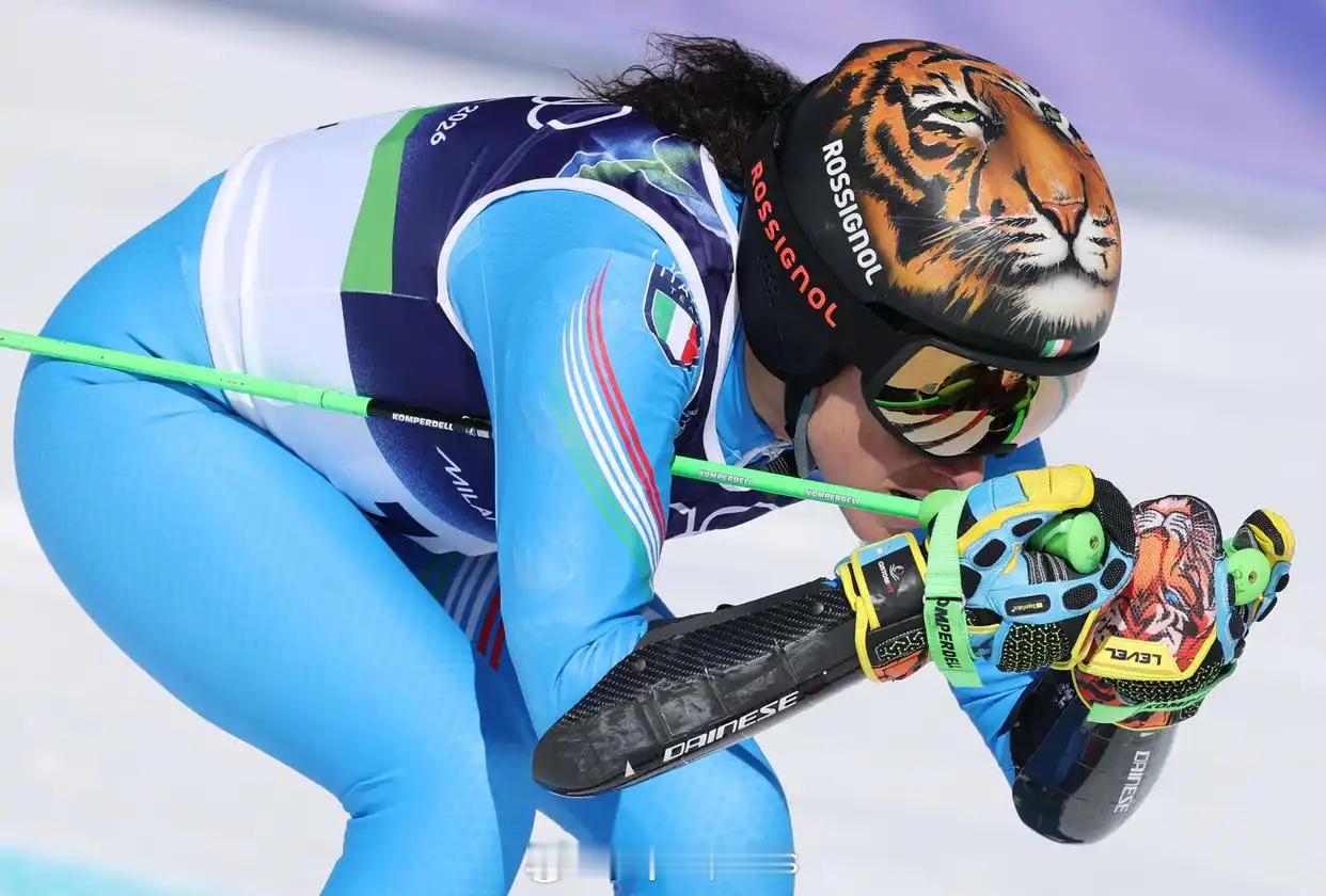 【老虎头盔虎虎生威亚季军向冠军跪拜】冬奥会2月15日,在冬奥会高山滑雪女子大