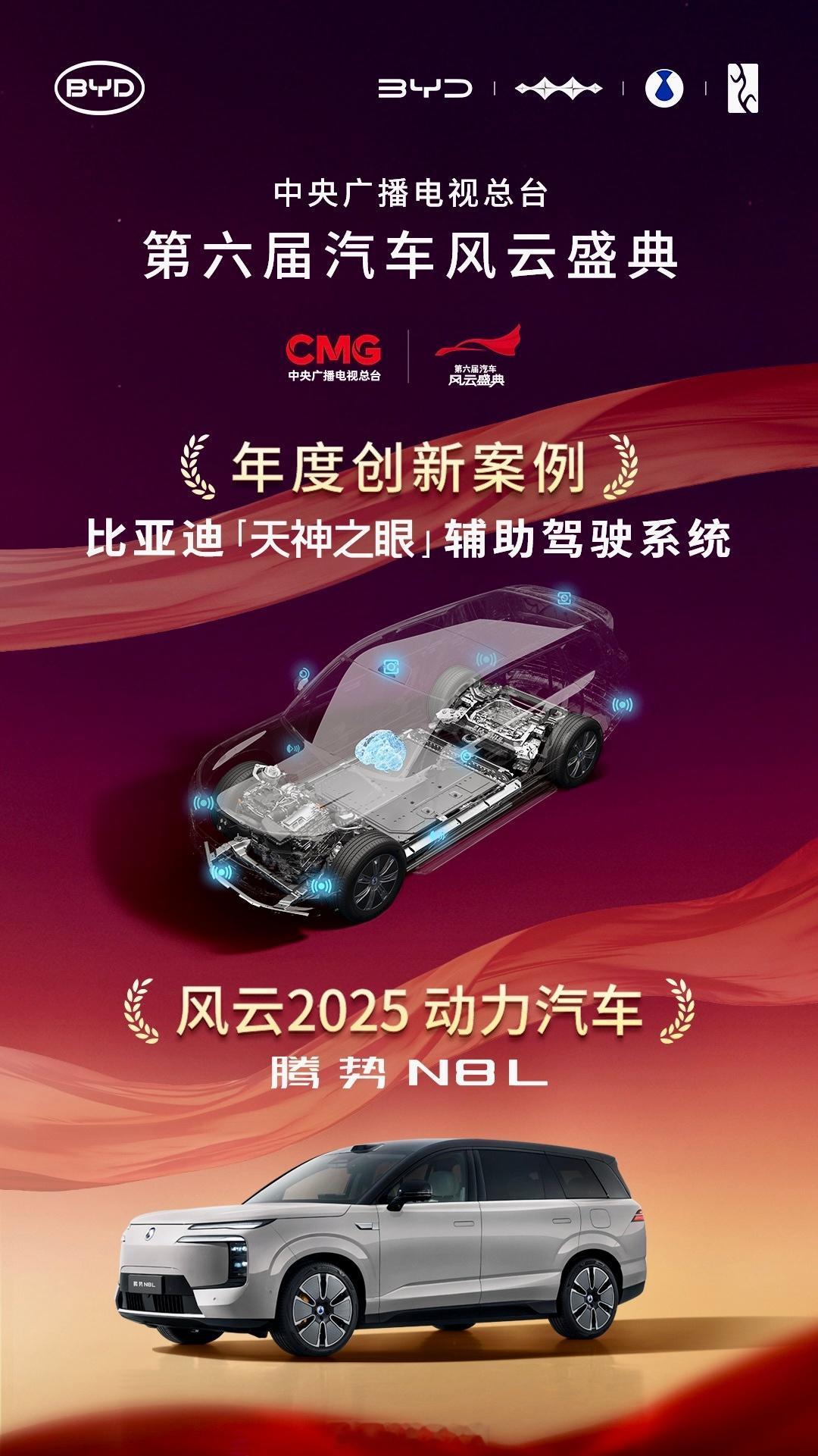 腾势N8L拿下“风云2025动力汽车”,比亚迪天神之眼智驾系统也拿到“年度创新案例”,冠军手,太争气了