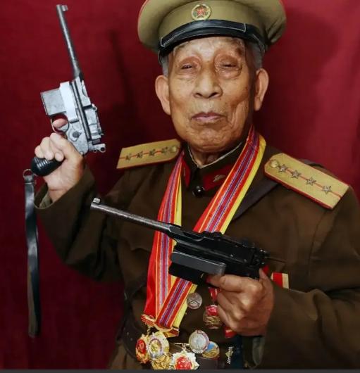 1996年,滕西远私藏两支手枪,民警让他上交,可他却说:“这两支枪,一支是粟裕大将给我的,一支是开国中将给我的,你们要哪支?” 1996 年,全国开展枪支清理整顿,山东莱芜一位名叫滕西远的老人家中,藏有两支手枪被民警排查发现,当民警耐心劝说他按规定上交时,老人却坚定摇头,指着两把枪掷地有声:“这两支枪,一支是粟裕大将给我的,一支是开国中将给我的,你们要哪支?” 一句话让在场民警愣住,这两把看似普通的旧枪,背后竟连着两位开国将帅的嘉奖,更藏着一位老兵用命换来的烽火传奇。 滕西远 1925 年出生在莱芜深山,家境赤贫,年幼时弟弟饿亡,13 岁便背着仅剩一口气的四弟投奔部队,因年纪太小、身形瘦弱,他先在县大队苦练本领,直到 1940 年,在沂蒙山区的反扫荡战斗中一战成名。 在与日军的白刃战里,他被敌人刺刀刺中腋下,强忍剧痛反手将刺刀刺入日军指挥官要害。 战后才知道,他击毙的是日军一名重要指挥员,这一战,滕西远荣立一等功,开国中将廖容标亲自接见,将自己的匣子枪赠予这位少年英雄,这是他人生中第一把枪,也是用鲜血换来的荣耀。 第二把枪,来自粟裕大将,1947 年解放战争期间,已是连长的滕西远夜间巡逻,意外发现山沟里藏着数百名准备偷袭的国民党部队。 敌我力量悬殊,他没有退缩,一边让警卫员火速求援,一边利用地形虚张声势,投弹、射击、交替喊话迷惑敌人,最终以极少兵力配合主力,俘虏敌军两个加强营,创造了战场奇迹。 粟裕得知后大为赞赏,当即解下自己随身多年的驳壳枪赠予他,还戏称这位勇猛的战士为 “双枪太岁”。 这两把枪,跟着滕西远走过莱芜战役、孟良崮战役,又随他跨过鸭绿江,参加抗美援朝,在马坪里阻击战中,他抱着十斤重的炸药包冲向敌军坦克,炸掉装甲目标,自己被气浪掀飞数丈,胸前多了一枚 “爆破英雄” 勋章,后背永远留下了弹片的印记。 退伍返乡时,部队为他正式办理了持枪证明,两张泛黄的证书编号都是 “001 号”,盖着鲜红的部队大印,是国家对英雄功绩的认可。 民警核实完所有证明与事迹,既感动又敬佩,考虑到枪支管理规定,他们取走子弹与关键配件,消除安全隐患,最终尊重老人的心愿,让这两把承载功勋的枪支留在了他身边。 曾有文物贩子上门,开高价想买下这两把枪,滕西远直接抄起笤帚将人赶出院子:“这是命换来的念想,死了要带进棺材的!” 平日里,他用油布层层包裹枪支,藏在炕柜深处,只在每年八一建军节,才郑重取出擦拭保养。 百岁之年,滕西远依然精神矍铄,他常说,枪不是用来炫耀的,而是用来记住那段保家卫国的岁月,2024 年,老人主动将其中一把枪捐赠给军区,让红色记忆代代相传。 两把旧枪,不是普通的武器,而是一位老兵的军功章、一段历史的活化石,滕西远不肯交枪,不是无视法规,而是不愿割舍用生命守护的信仰与荣光。 从少年参军到百岁归隐,他把最热血的年华献给国家,把最纯粹的忠诚刻进骨子里,民警人性化处理、国家给予特殊认可,更体现出对英雄的敬畏与温情。 今天的和平来之不易,正是无数像滕西远这样的普通人,在民族危亡时挺身而出,用血肉之躯筑起长城,他们的故事不该被遗忘,他们的精神更值得永远传承,铭记英雄,不是怀念战火,而是守护我们来之不易的安宁岁月。