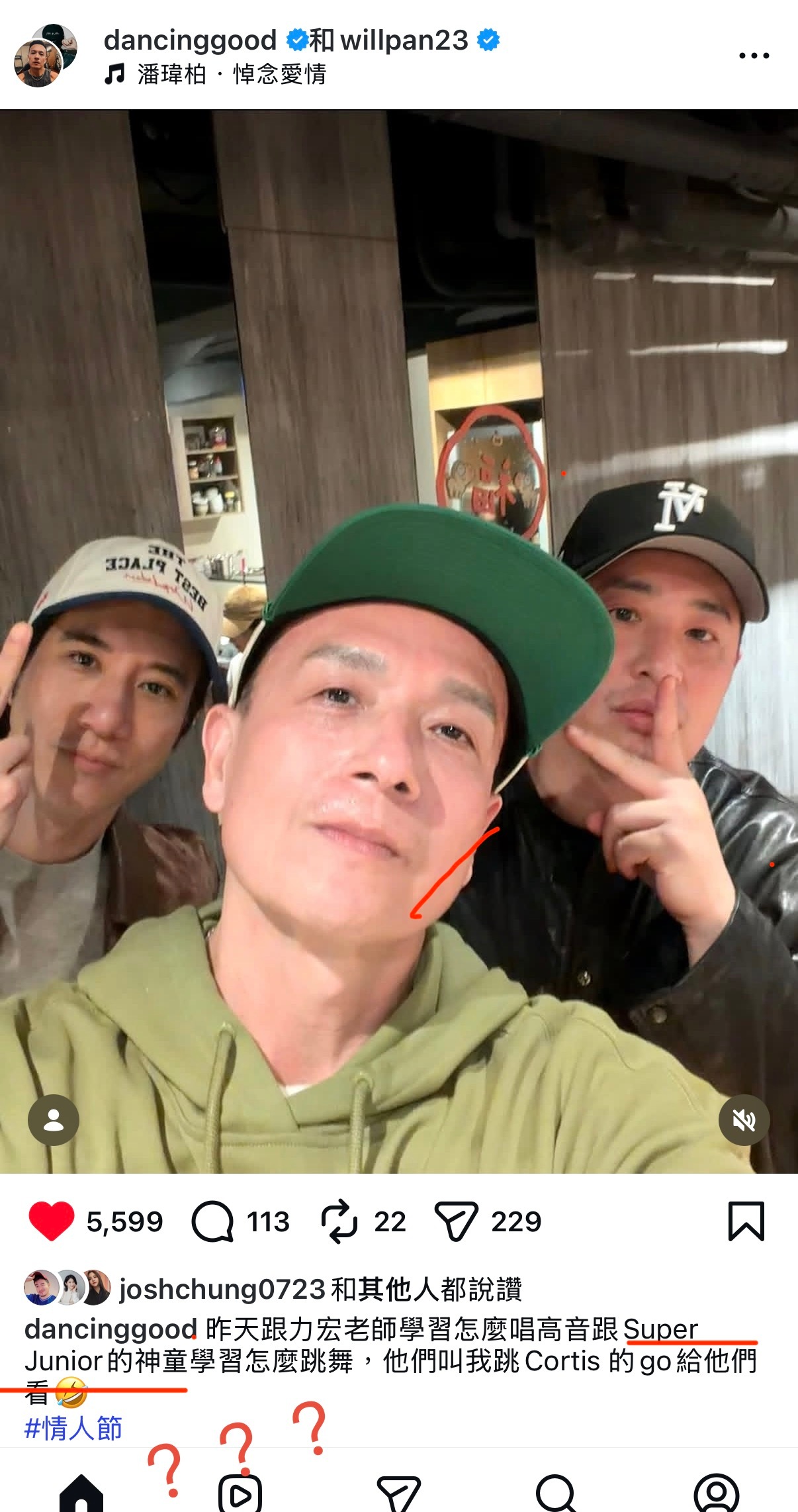小钟分享和王力宏、潘玮柏合照