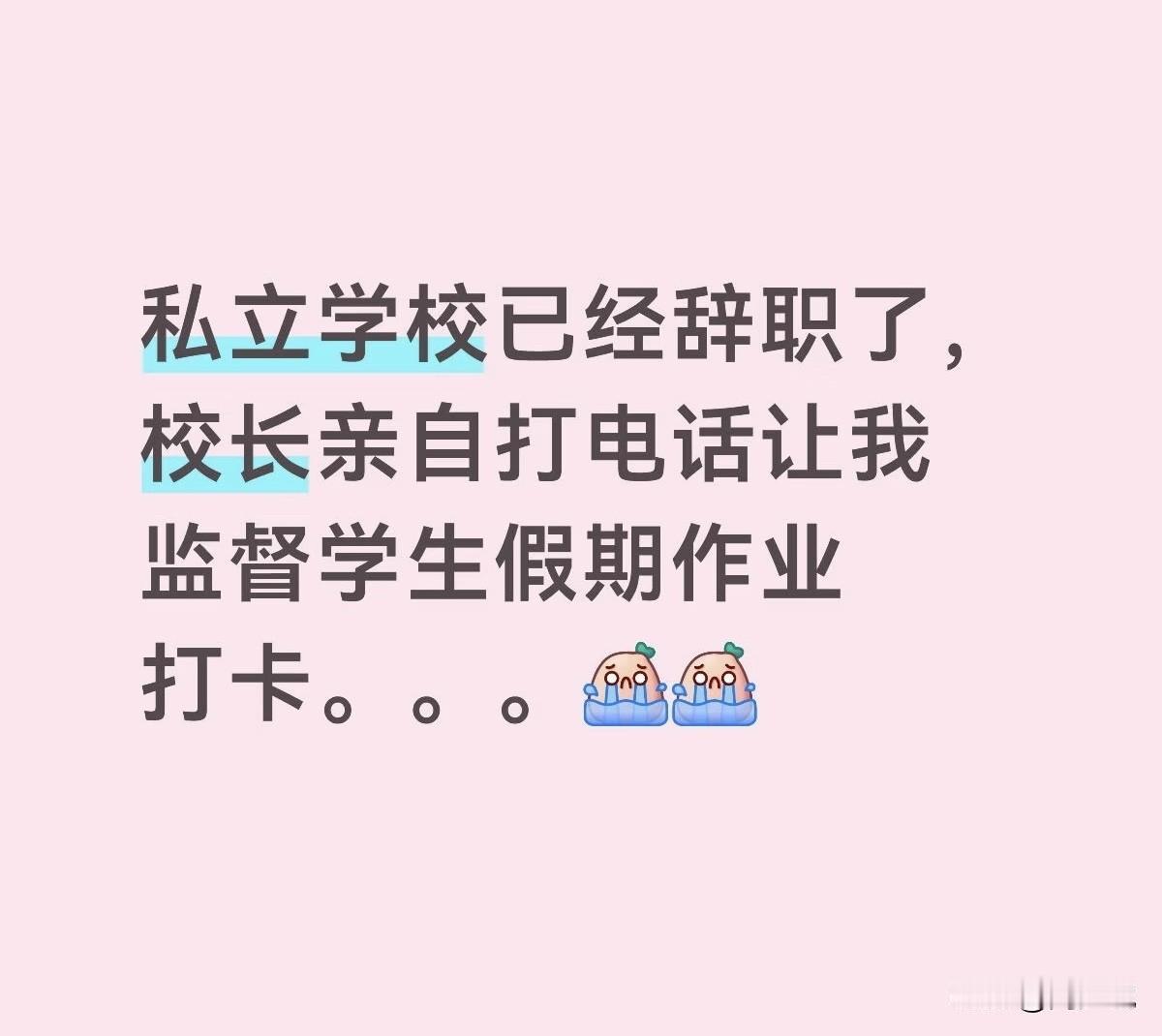 “笑哭!”一位私立学校刚辞职的教师爆料,自己前脚办完离职,后脚就接到校长电话,被要求监督学生假期作业打卡。老师心里也犯嘀咕,直接问了一句:假期帮忙盯打卡,有没有工资?结果消息发过去,校长再也没有任何回应,场面十分尴尬。 这件事在网上一发出,立刻引来不少网友共鸣。有网友说:“太真实了,很多学校都这样,觉得老师就该讲奉献,一提钱就变脸”。 也有人调侃:“用人的时候想到你,谈待遇就装看不见,典型的“道德绑架”。 对于此事,周少觉得其实在教育圈里,类似的情况并不少见。不少学校习惯把“奉献”挂在嘴边,却很少考虑老师的实际付出与合理回报,尤其是对已经离职、不再有职务约束的前员工,更是容易提出一些不太合理的要求。 在周少看来,老师愿意付出、愿意负责,本是出于职业本心,但这并不代表义务劳动就理所应当。假期本是老师的私人时间,离职后更没有义务为原单位无偿工作。校长的做法,看似是信任,实则少了几分尊重与体谅。 我们不反对老师多一份责任心,可任何付出,都该有最基本的认可。应该多一点换位思考,少一点理所当然,教育行业的关系才会更健康、更长久。#寻美三湘#