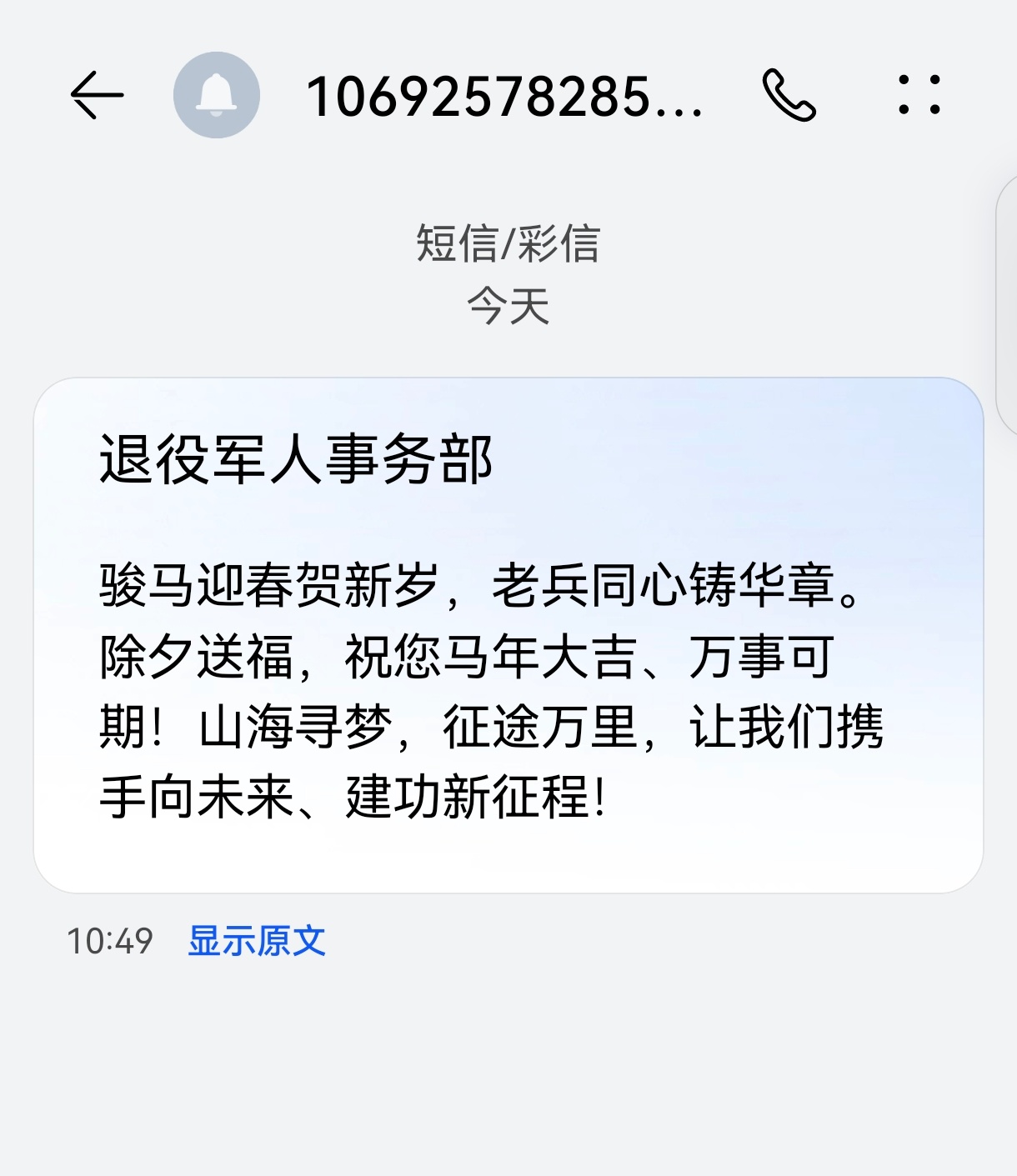 【退役军人事务部】骏马迎春贺新岁,老兵同心铸华章。除夕送福,祝您马年大吉、万事可期!山海寻梦,征途万里,让我们携手向未来、建功新征程!