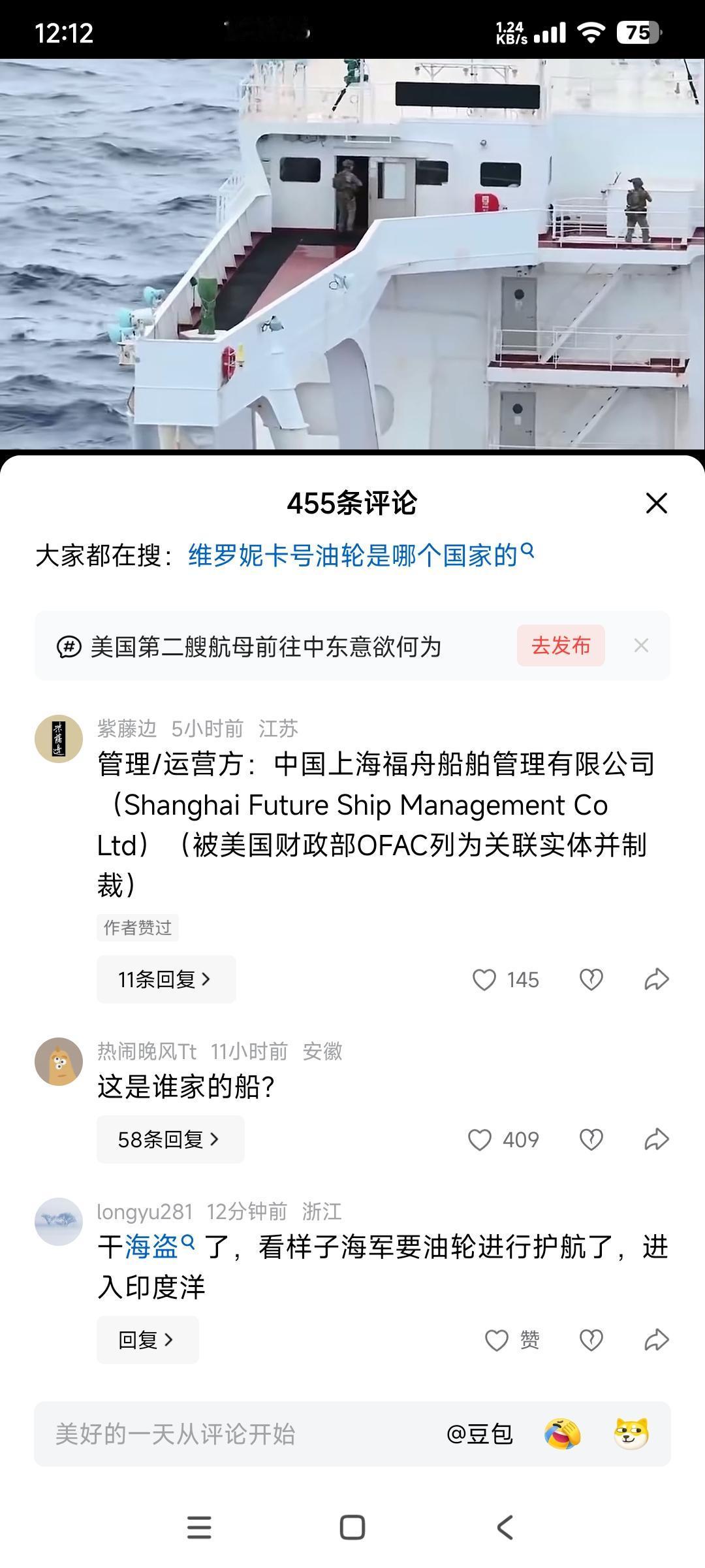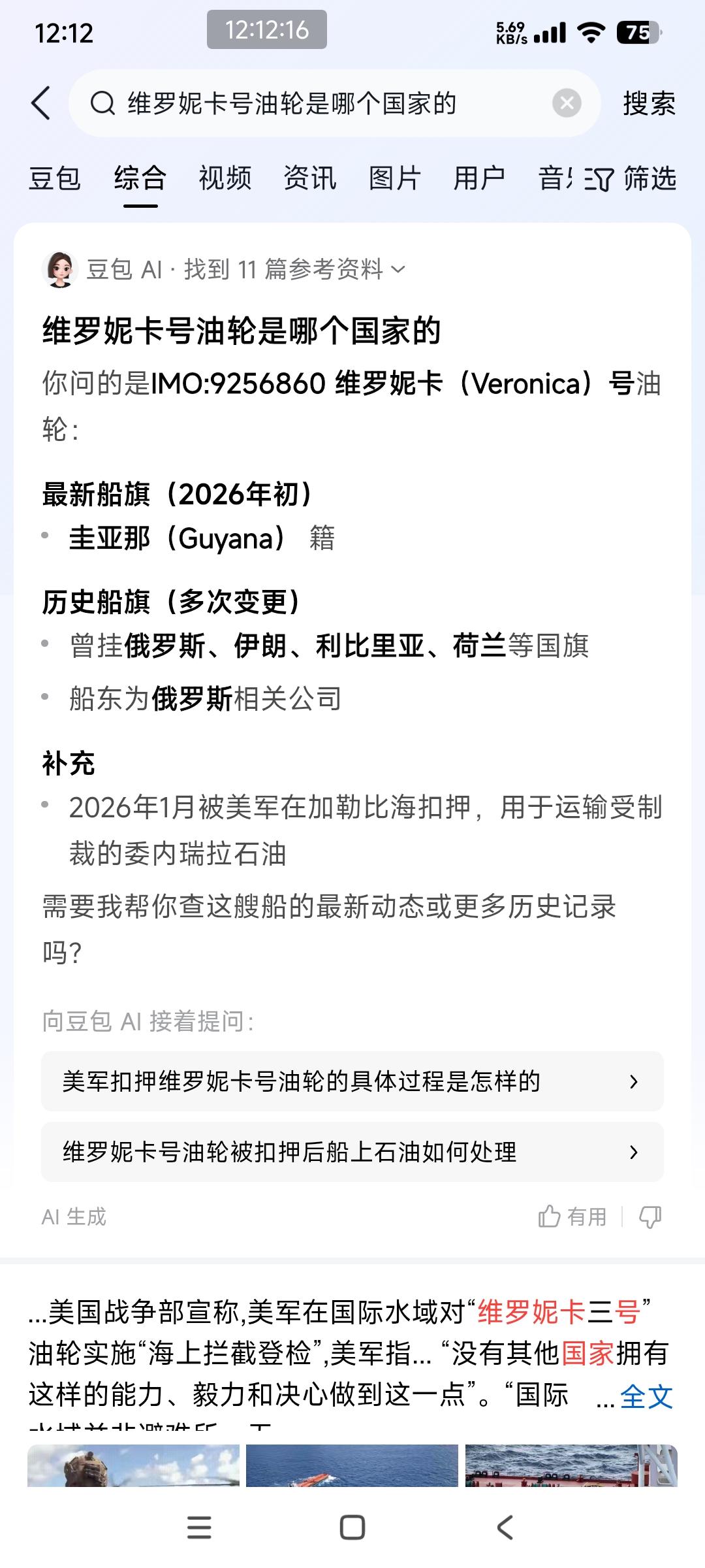 假消息满天飞 美国非法扣押了一艘叫维罗妮卡号的油轮 国内有自媒体账号散布虚假消息,有的说这艘油轮是中国上海的,有的说是中国香港的……。 这样会给中国民众造成误解,我们“软弱无能,任由美国欺负”。 我问了一下豆包,这艘维罗妮卡油轮是俄罗斯的,并不是中国的油轮。