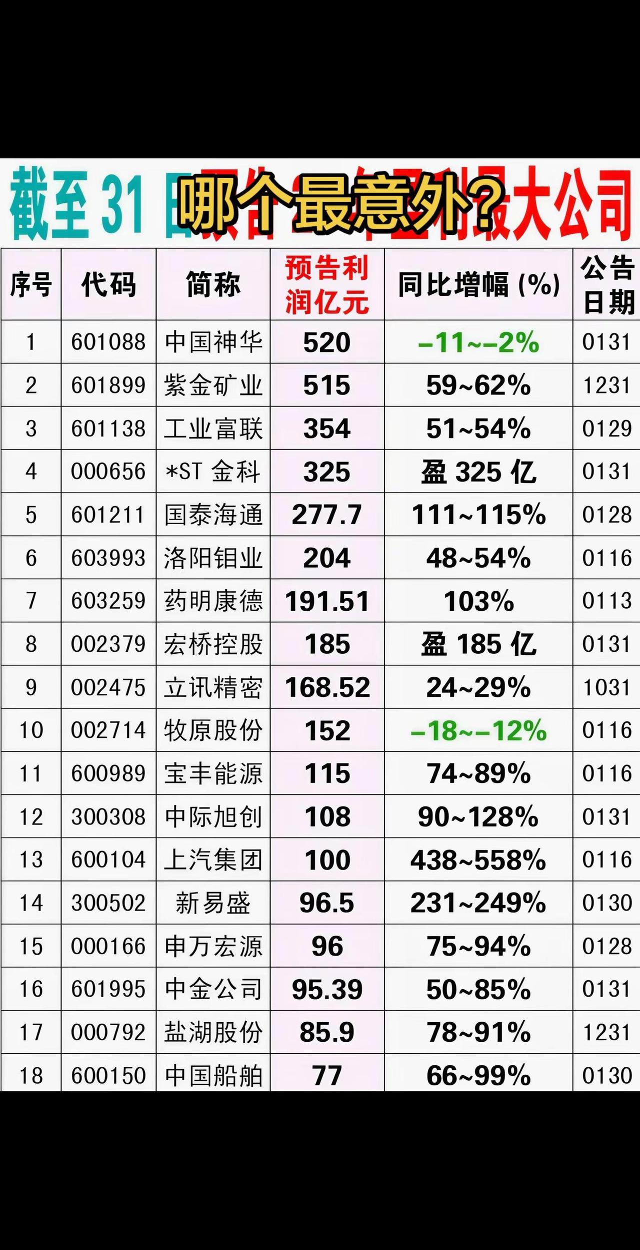 2025年已经出年报公告的,预期盈利最多的十八家公司