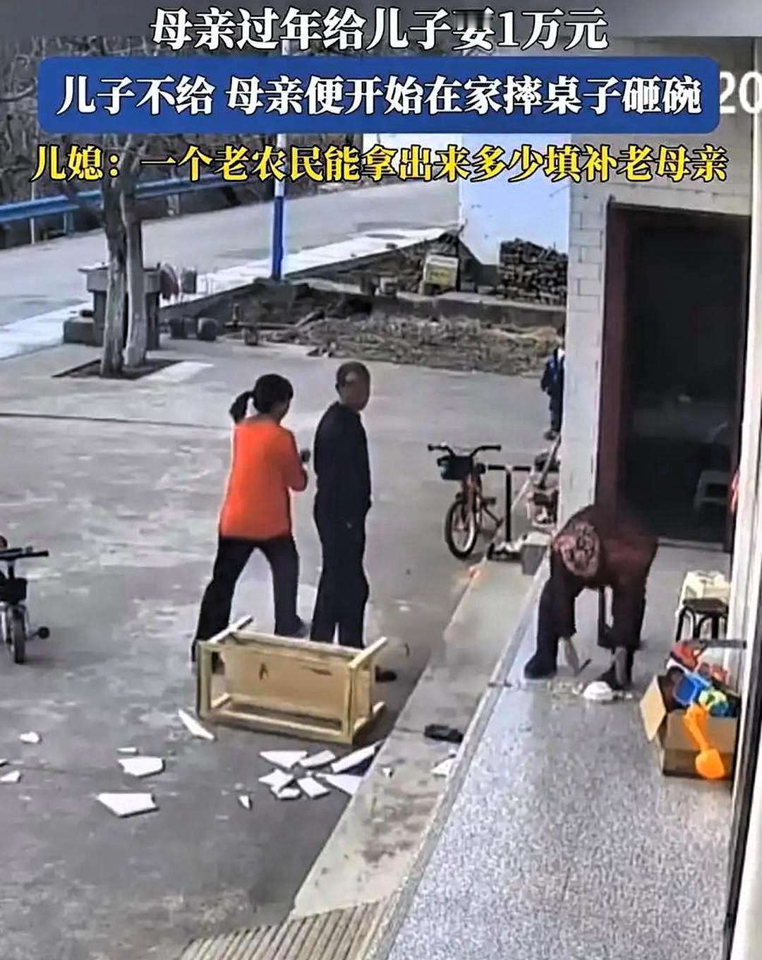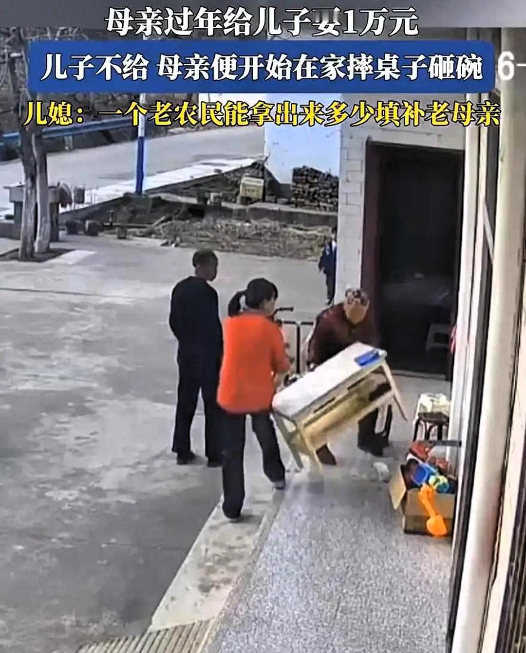 太心酸了!近日陕西有户人家刚做好好团圆饭正准备吃呢,可万万没想到,母亲突然伸手就把桌子给掀了,掀过桌子后又把碗摔了,张口就跟儿子要一万块钱,儿子没跟她发火,只是说自己手上没有那么多钱,儿媳妇在旁边也说,咱们就是个普通种地的农民,哪有那么钱拿来给你用! 从监控里可以看出,老人动作麻利,说话的声音也很洪亮,不像身体不好的样子,而且全家人也都是在农田里干活的。 本来应该是过年团聚的时候,可却因为这笔钱突然影响了大家的心情,儿子变得沉默也不说话了,儿媳妇脸上没有了表情,团员饭都还没有吃完,家里暖和的气氛一下子就散落了一地。 你们觉得在过节家庭团聚的日子,为了这笔钱搞得家庭不和睦值得吗?