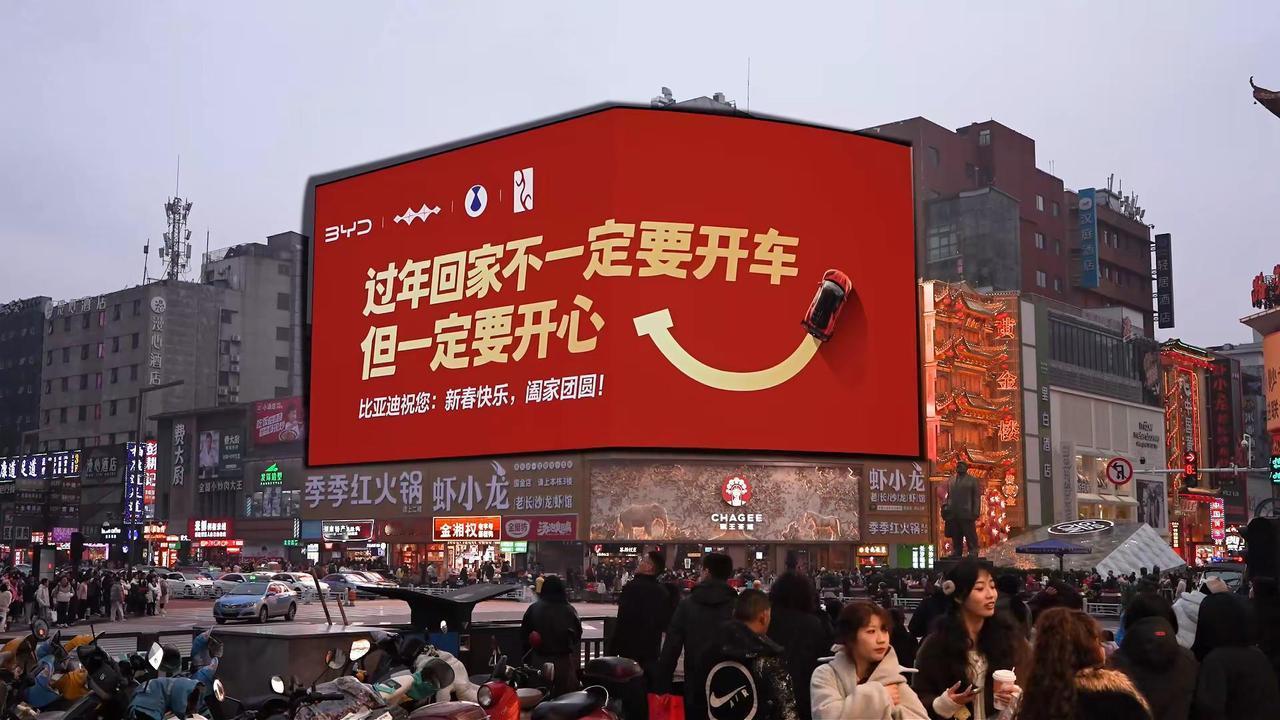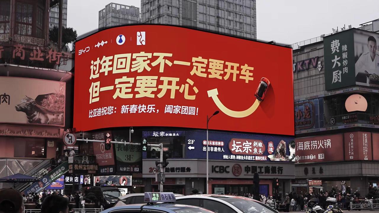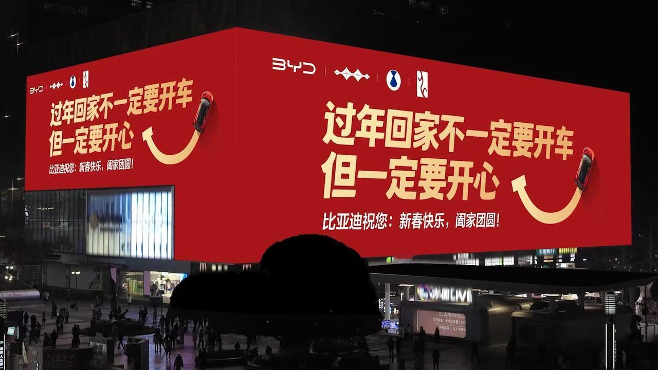 比亚迪广告费打水漂,新年常开心说出大实话。比亚迪广告费打水漂了,新年常开心说出大实话。同志们,你们看看这句广告词,过年回家不一定要开车但一定要开心,你能相信这是一个车企打出来的广告吗?别家的广告说的是开我们的车回家过年如何舒适如何有面子如何能装,你家的广告就告诉大家要开心。好家伙,这租广告位的钱纯属打水漂了啊。不过比亚迪这句看似说废话的广告词,才是真正能在不经意间引起普通老百姓共鸣的大实话,当我们忙碌一年好不容易放几天假,拖家带口驱车上千公里回老家,卡着免费时间半夜上高速,看着无尽的堵车长龙望洋兴叹,这个时候仔细想想:为了面子而开车回家过年,真的有必要吗?所以说啊,过年回家不一定要开车,但一定要开心,就像前几年网上流行的那句“有钱没钱回家过年”一样,过年回家的意义在于团聚,如果给这份团聚施加过多负担,只会给自己徒增烦恼。今天就是除夕了,在此我也祝大家新年常开心。