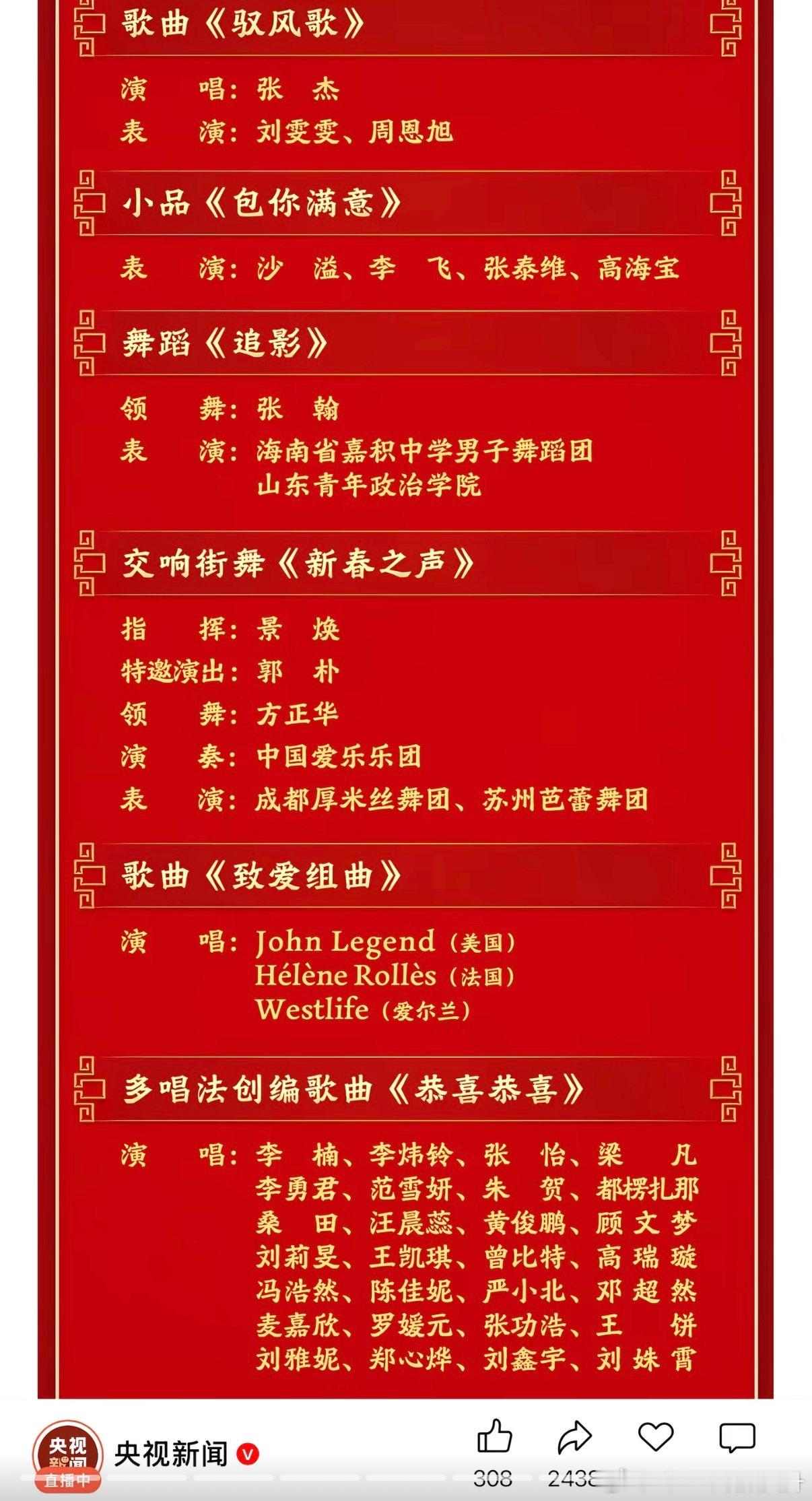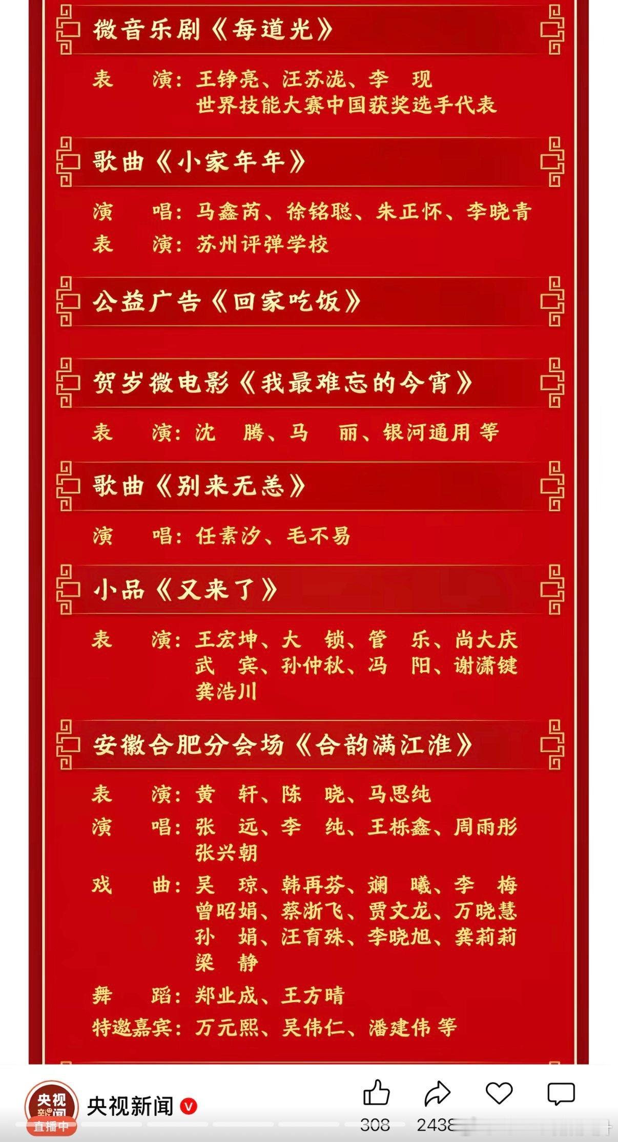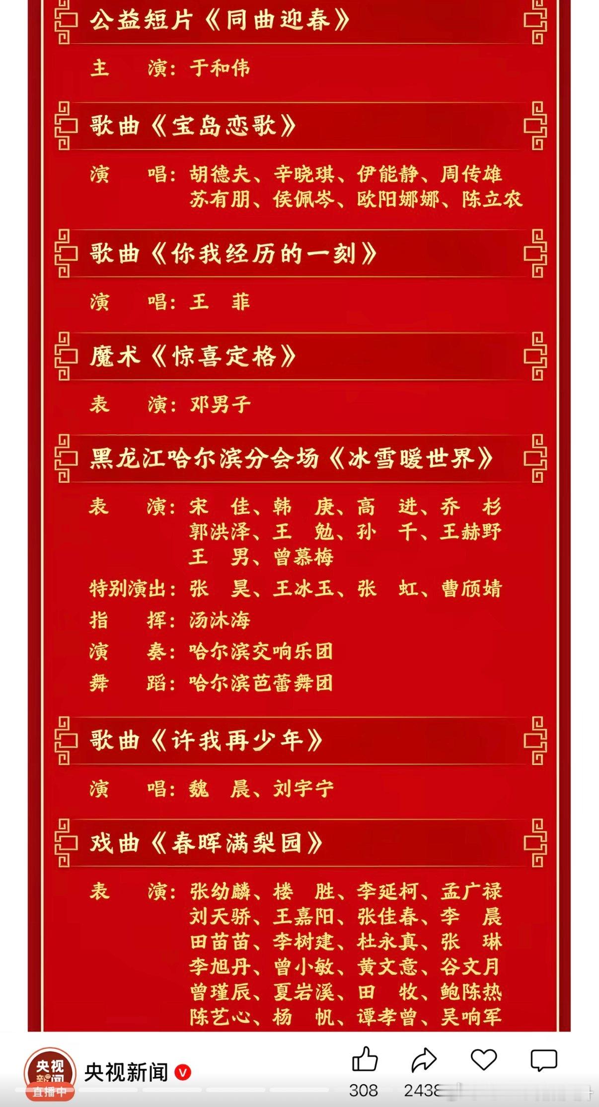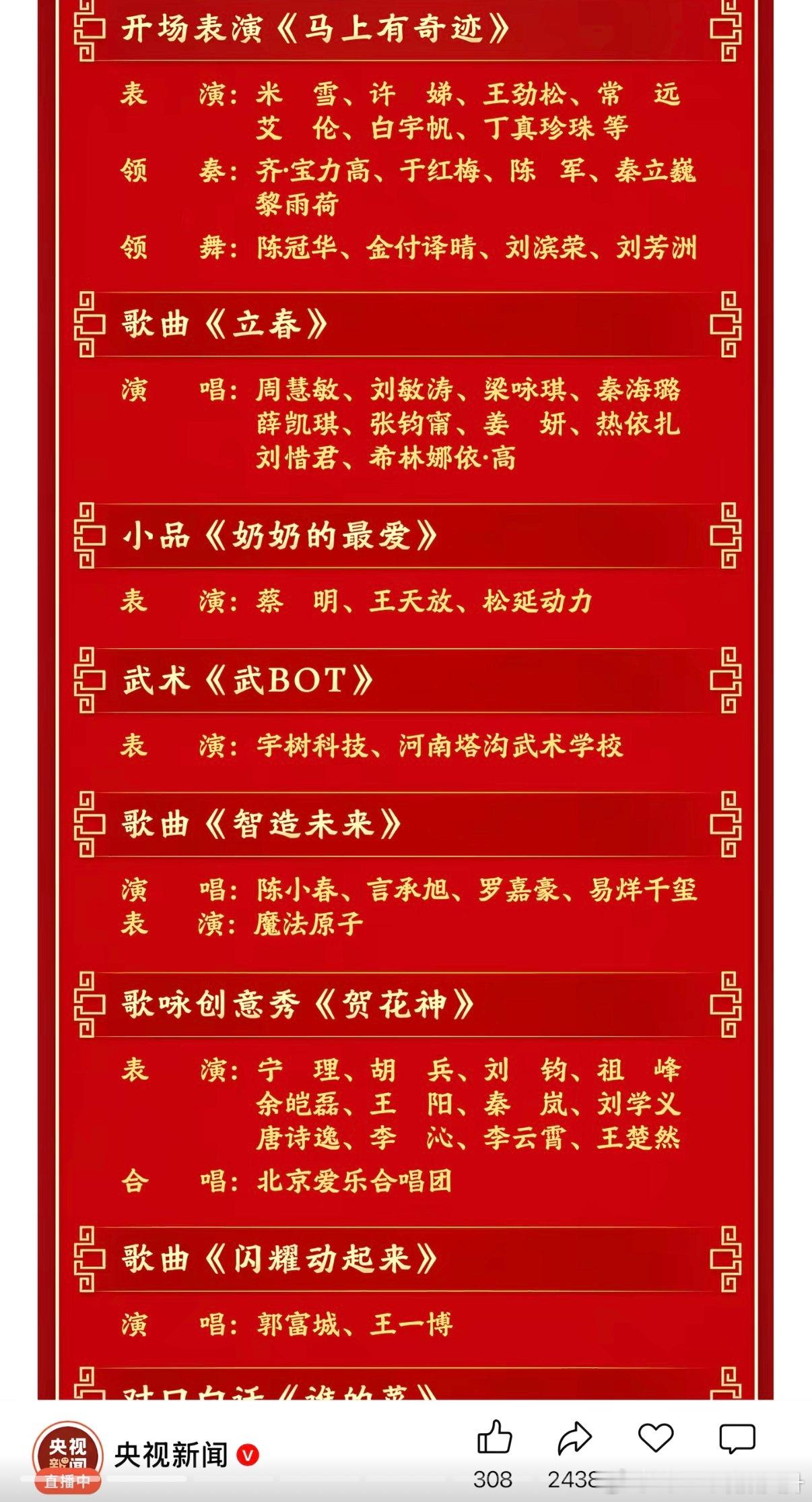 春晚节目单今晚有周深、王菲和蔡明还有沈腾马丽和沙溢我要蹲一蹲