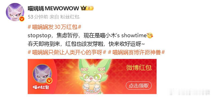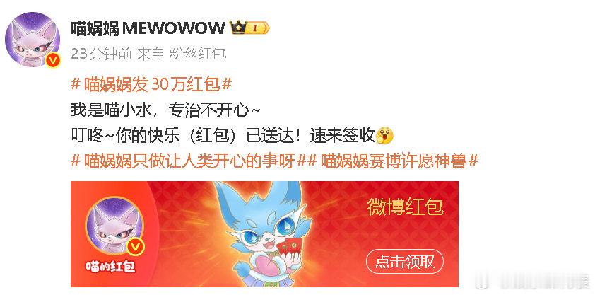 喵娲娲红包额度谢谢喵小水18888.88×3已解锁,但的喵喵军团才刚亮相!数数