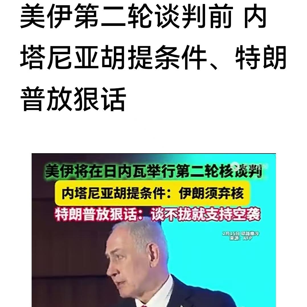 美国和伊朗第二轮谈判还没有开始。以色列总理内塔尼亚胡就像以色列和美国提出条件。 内塔尼亚胡的意思就是让伊朗所提炼的浓缩油全部要交出来。提这种条件有可能吗?有可能会成功吗?那我想肯定不会成功。以色列总理内塔尼亚胡的意思就是要伊朗交枪投降。这种条件伊朗肯定不会接受。 这是第二轮谈判。伊朗的外长将率领代表团前往瑞士日内瓦。与美国就核问题举行第二轮间接谈判。这里有必要介绍一下,为什么说间接的谈判。间接谈判就是伊朗坐在伊朗屋里面。美国代表团坐在另一个房间里面,他们不会见面的。也就是有中间商,中间人递纸条各方把自己的诉求写的清清楚楚。让中间人递给对方。这样有什么好处呢?就是避免。从对方的脸上表情上。看出一些端倪。 那么,美国的代表团肯定按照以色列的想法去跟伊朗谈判。 我认为以色列这种想法是不切合实际的。伊朗不可能交出他们的浓缩釉。 交出来浓缩药。伊朗就承认交枪。那就是有以色列和美国任意摆布了。我认为以色列和美国的这种想法是不切合实际的。伊朗也绝对不会接受以色列的条件。另外还有一个美国总统特朗普告诉内塔尼亚胡。如果美国和伊朗无法达成协议,他将支持以色列空袭伊朗弹道导弹的设施。只有以色列攻击伊朗导弹设施。伊朗肯定要报复以色列。就是板上钉钉的事情。如果大家不相信,可以拭目以待。