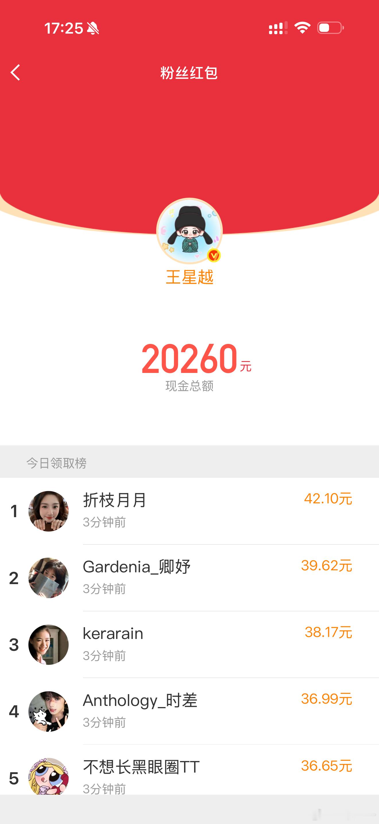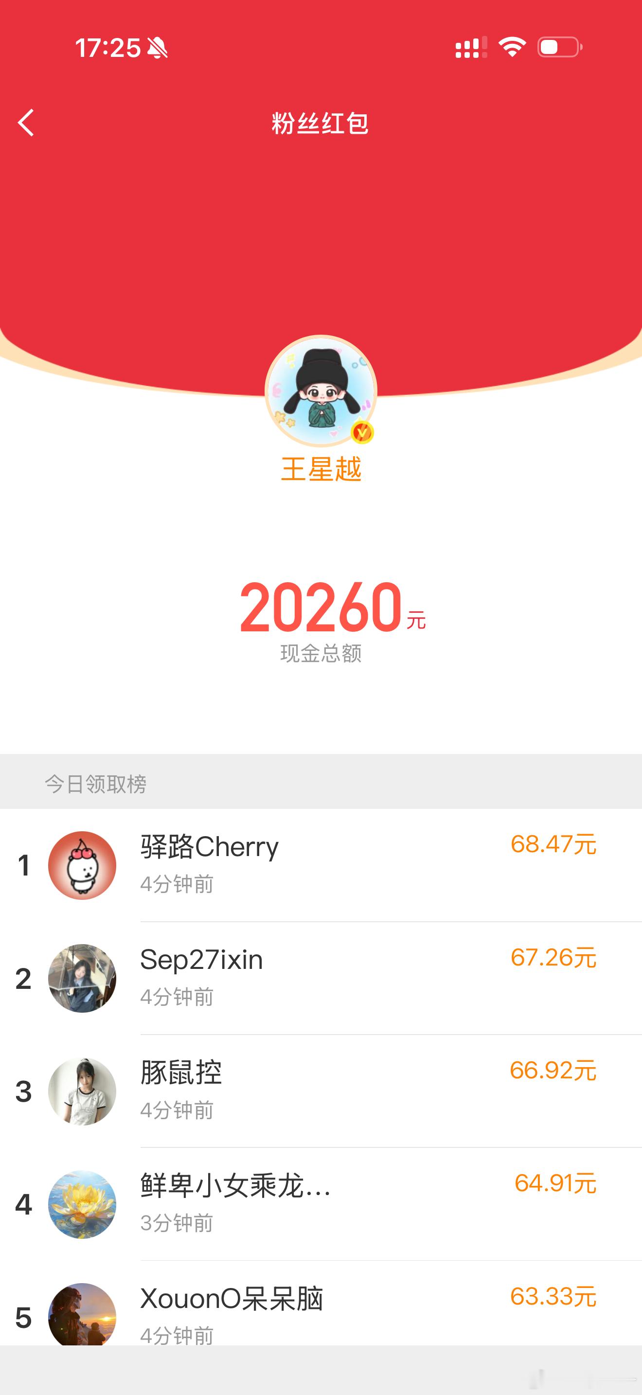 蹲王星越红包王星越一口气又发了6万多的……