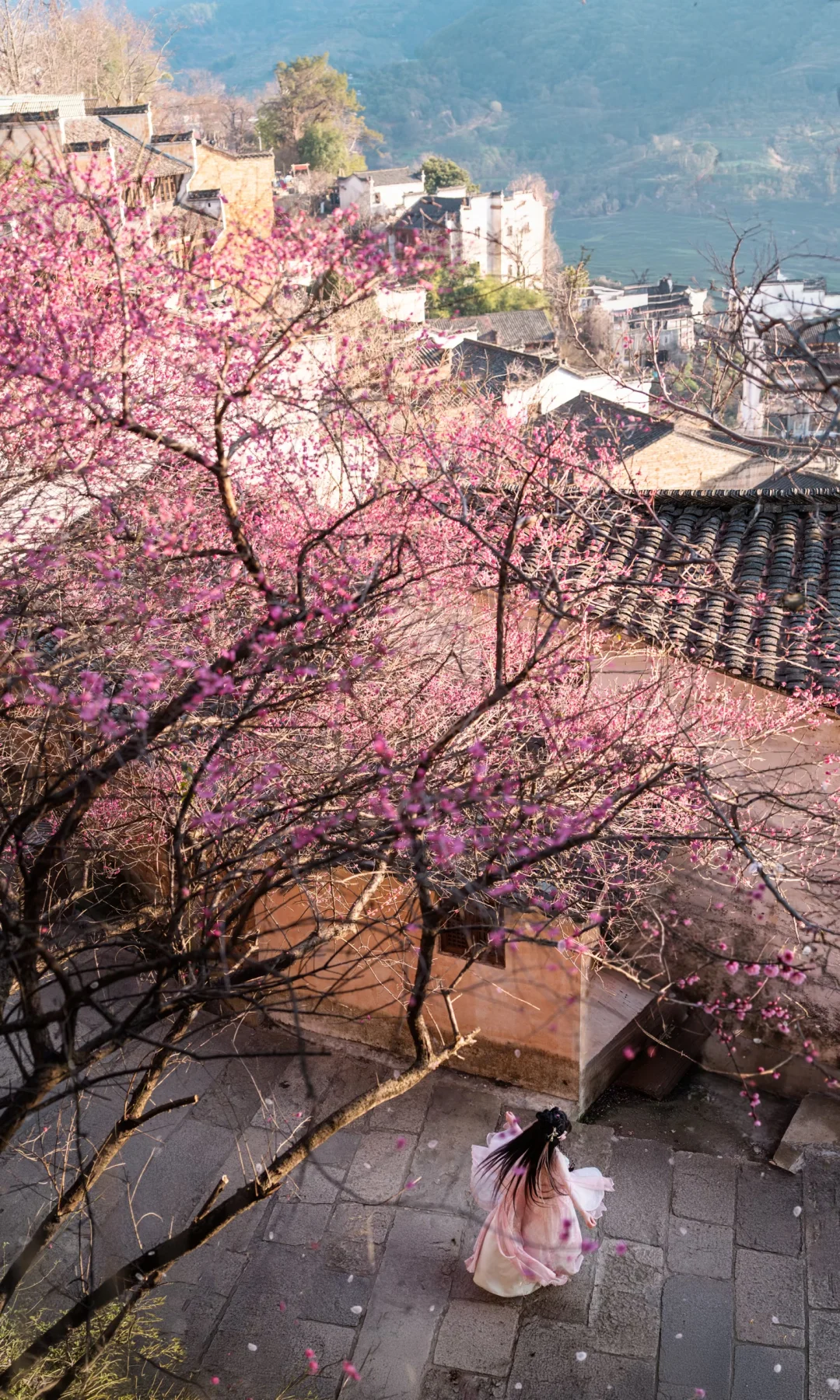 漫步青瓦的篁岭古村, 一转角便撞进满园梅花里。 风携着淡淡梅香缓缓拂过, 枝头繁花温柔。 没有喧嚣, 只有满目的诗意与暗香, 这大概就是冬日里动人的中式小美好🌸