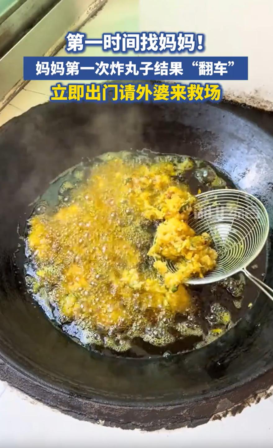 笑不活了!安徽马鞍山,女生回家过年,妈妈表示今年要露一手,第一次下厨炸丸子,结果却直接翻车了,到底还是请外婆前来救场,到最后妈妈也没搞明白,为什么丸子不成团,一放到油锅里就会散掉 何女士介绍,往年过年丸子都是外婆或者奶奶做,然后她们拿现成的回来吃,妈妈今年心血来潮,突然说要自己调馅炸丸子,一切准备就绪,她也是信心满满,可把丸子放到油锅里就发现事情没那么简单 丸子进入油锅后根本不成团,无奈之下,她只能让女儿赶紧出门到外婆家,把外婆叫过来救场,好在两家离得不算远,不然这一盆的肉馅就要浪费了 老太太一来,三两下就搞定了,丸子该圆的圆,该香的香。一直到吃完,妈妈都没想明白,自己到底差在哪儿 其实这事儿挺常见的,炸丸子看着简单,里头全是手上功夫。肉馅的干湿程度、面粉淀粉的比例、搅拌有没有上劲,甚至手攥丸子下锅的那个力道,油锅的温度,这都是经验。妈妈头一回干,没摸着门道太正常了。可正因为这样,这场面才让人觉得又亲切又好玩 说到底,过年最动人的,往往不是多丰盛的饭菜,而是这些手忙脚乱的小插曲。妈妈突然想炸丸子,可能不只是想露一手,而是觉得自己该接过这个活儿了。以前只管等着吃,现在想亲手张罗,让女儿记住妈妈做的味道。这是她想完成的交接,哪怕第一次干砸了,也没关系
