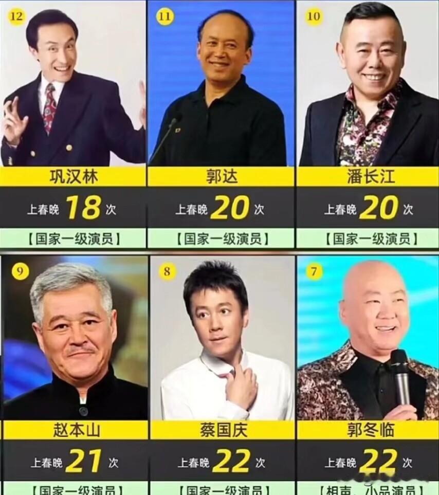 上春晚最多的竟然是冯巩和蔡明,分别是33次和27次,赵本山老师却只有21次。。。